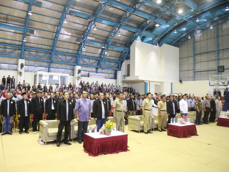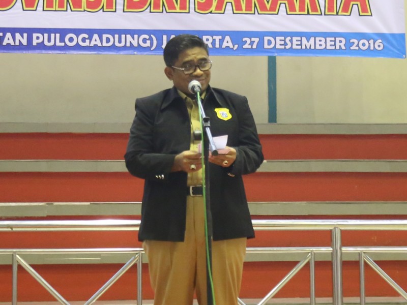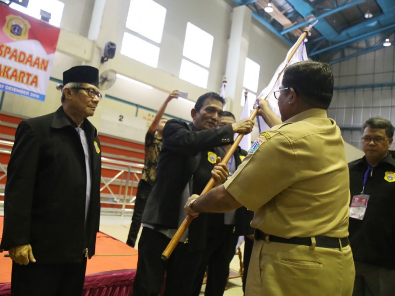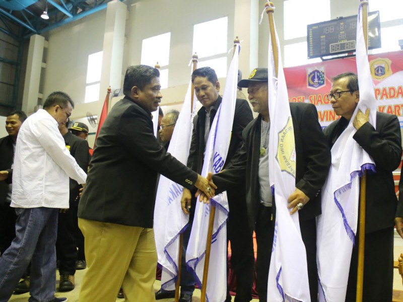 Pelaksana Tugas (Plt) Gubernur DKI Jakarta, Sumarsono membuka Apel Siaga Forum Kewaspadaan Dini Masyarakat (FKDM) se DKI Jakarta, di GOR Kecamatan Pulo Gadung, Jalan Pemuda, Kecamatan Pulo Gadung, Jakarta Timur, Selasa (27/12). Dalam forum ini Sumarsono mengajak seluruh anggota Forum Kewaspadaan Dini Masyarakat (FKDM) untuk menjaga keamanan wilayah Ibukota. (Reza/beritajakarta.com)