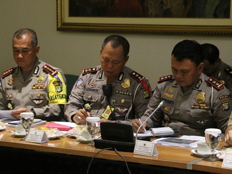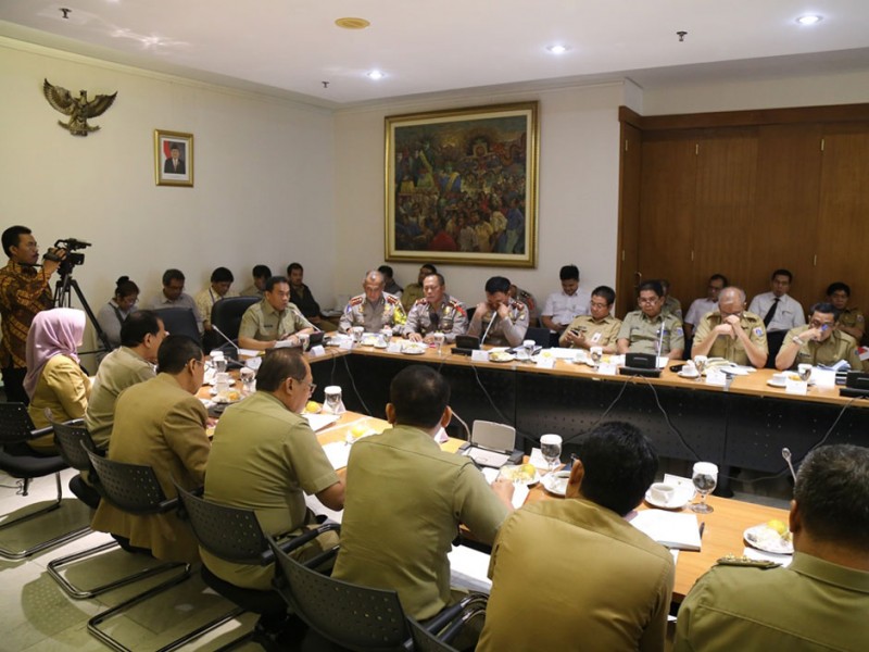 Sekretaris Daerah Provinsi DKI Jakarta, Saefullah memimpin rapat pembahasan persiapan perayaan pergantian tahun di Balai Kota Jakarta, Selasa (27/12). Dalam kesempatan ini turut hadir Dirlantas Polda Metro Jaya, Kombes Ermayudi bersama jajaranya guna memberikan laporan terkait kesiapan dari Polri dalam membantu kelancaran lalu lintas disekitar kawasan pada acara malam pergantian tahun. (Foto: Yopie/Beritajakarta.com)