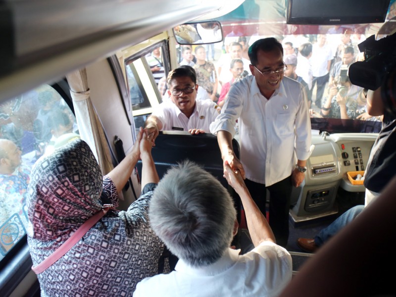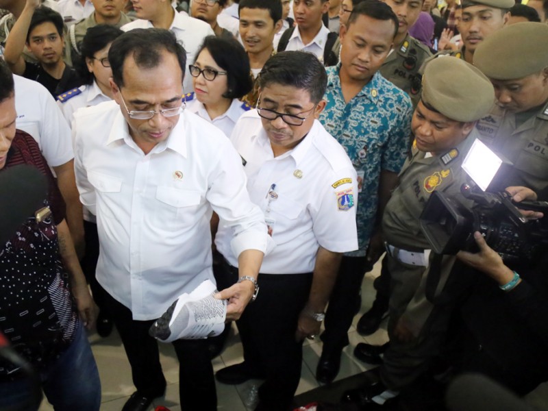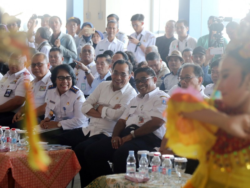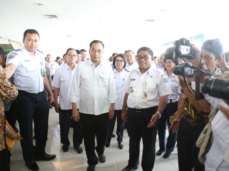 Menteri Perhubungan (Menhub), Budi Karya Sumadi membuka soft launching Terminal Terpadu Pulogebang, Kecamatan Cakung, Jakarta Timur, Rabu (28/12). Usai melakukan soft launching Menhub RI, Budi Karya Sumadi bersama Pelaksana Tugas (Plt) Gubernur DKI Jakarta, Sumarsono dan Kepala Dinas Perhubungan dan Transportasi DKI Jakarta Andri Yansah meninjau Terminal Terpadu Pulogebang. (Foto: Reza/Beritajakarta.com)