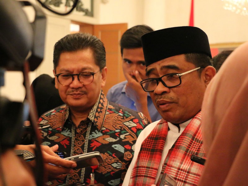 Pelaksana Tugas (Plt) Gubernur DKI Jakarta, Sumarsono menyaksikan penandatanganan Mou kepesertaan JKN tahun 2017 antara Dinas Kesehatan DKI Jakarta dengan BPJS Kesehatan dan melantik Badan Dewan Pengawas Rumah Sakit Provinsi DKI Jakarta di Balai Kota DKI Jakarta, Kamis (29/12).(Foto: Reza/Beritajakarta.com)