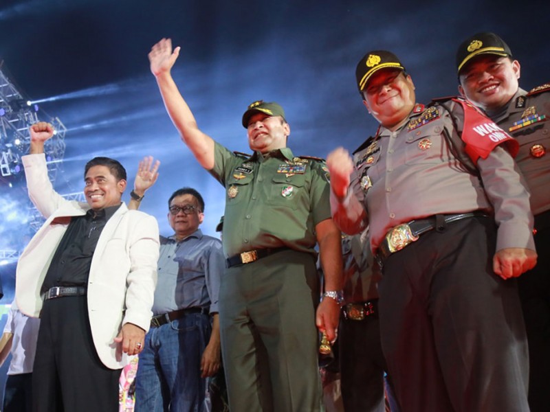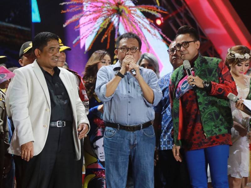 Pelaksana Tugas (Plt) Gubernur DKI Jakarta, Sumarsono merayakan malam Tahun Baru 2017 bersama warga di Pantai Carnaval, Ancol, Jakarta Utara. Hadir dalam perayaan ini jajaran Forum Komunikasi Pimpinan Daerah (Forkominda) dan sejumlah pimpinan Satuan Kerja Perangkat Daerah (SKPD) untuk merayakan malam tahun baru bersama. (Foto: Reza/Beritajakarta.com)