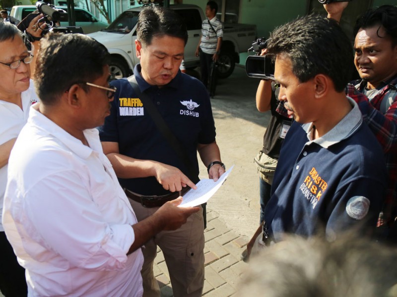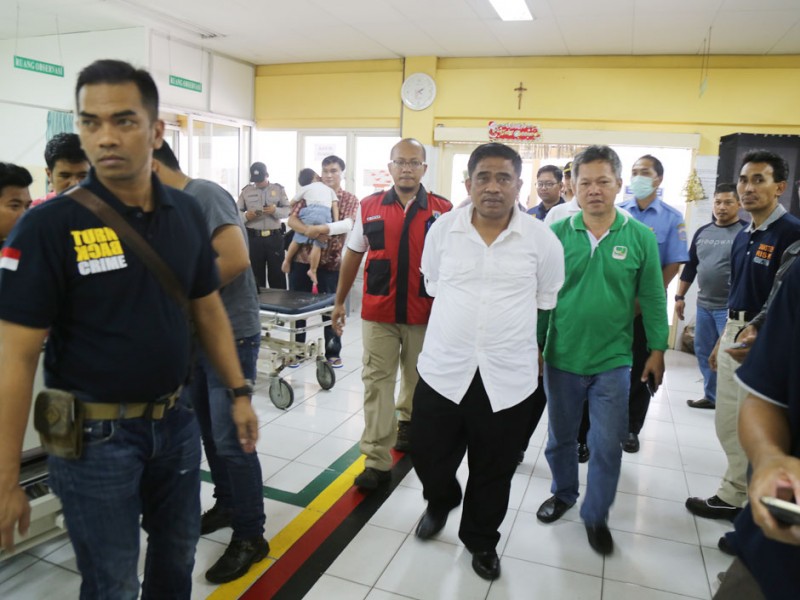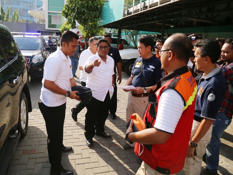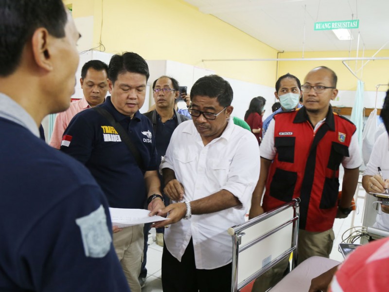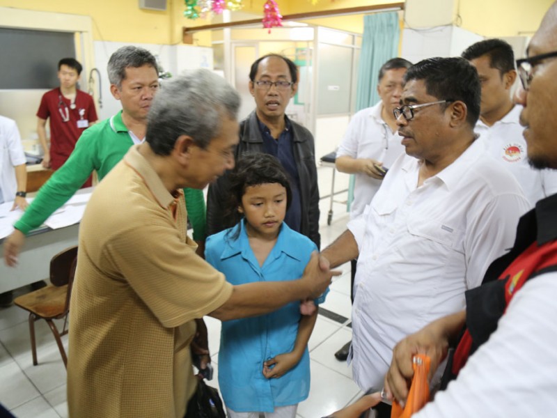 Pelaksana Tugas (Plt) Gubernur DKI Jakarta, Sumarsono mengunjungi korban kecelakaan terbakarnya Kapal Zahro Express di Rumah Sakit (RS) Atmajaya, Pluit, Jakarta Utara, Minggu (1/1). Pada kesempatan itu Sumarsono yang didampingi Kepala Pelaksana BPBD Provinsi DKI Jakarta, Deny Wahyu Haryanto serta kepala Dinas Perhubungan DKI Jakarta Andri Yansyah. (Foto: Yopie/beritajakarta.com)