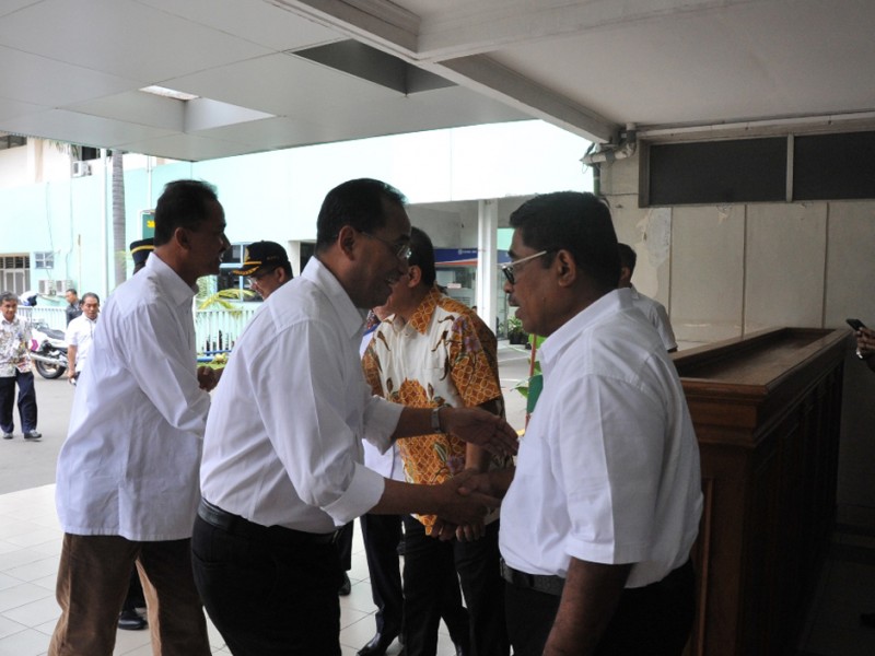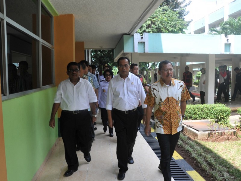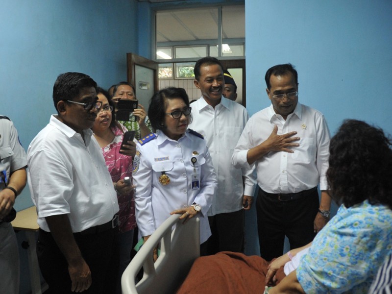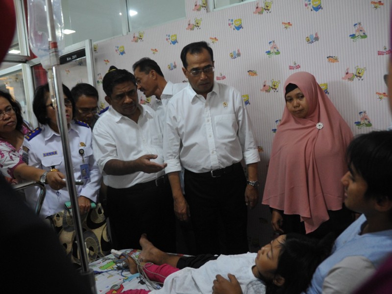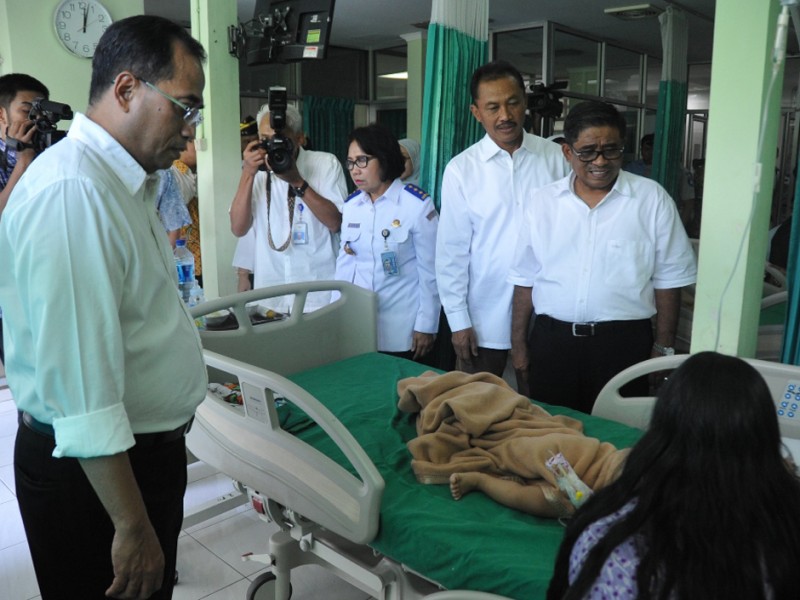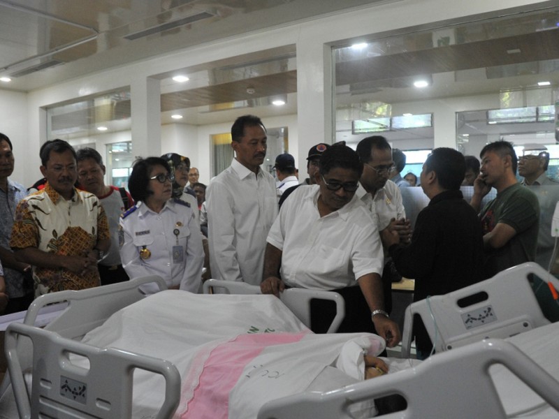 Pelaksana tugas (Plt) Gubernur DKI Jakarta, Sumarsono bersama Menteri Perhubungan, Budi Karya Sumadi menjenguk korban terbakarnya Kapal Zahro Express di Rumah Sakit Pusat Angkatan Darat (RSPAD) Gatot Subroto, Senen, Jakarta Pusat, Selasa (2/01). Adpun keempat korban yang dirawat di RSPAD tersebut yakni tiga orang anak-anak dan satu orang dewasa. (Foto: Reza/Beritajakarta.com)