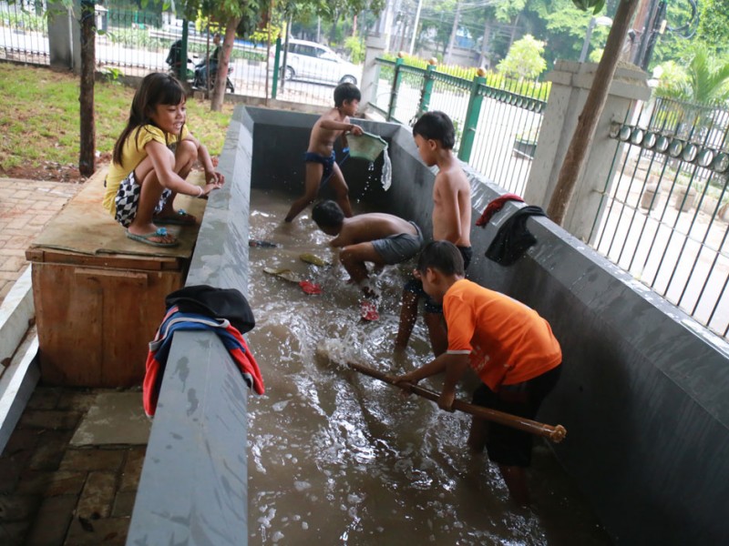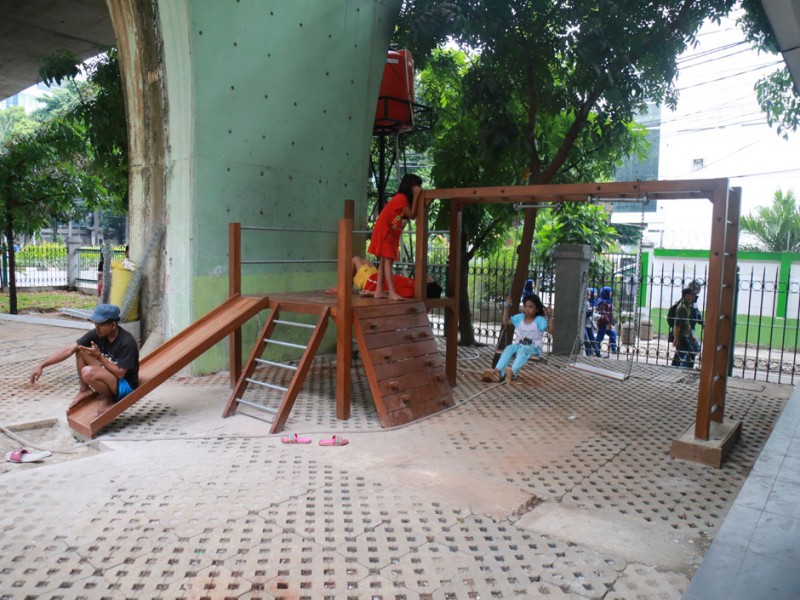 Sejumlah pengerjaan akhir tengah dilakukan jelang peresmiam Ruang Publik Terpadu Ramah Anak (RPTRA) Kebon Sirih di Jalan Kebon Sirih, Kecamatan Menteng Jakarta Pusat, Rabu (4/1/). Progres pengerjaan RPTRA saat ini sudah mencapai 98 persen. (Foto: Reza/Beritajakarta.com)