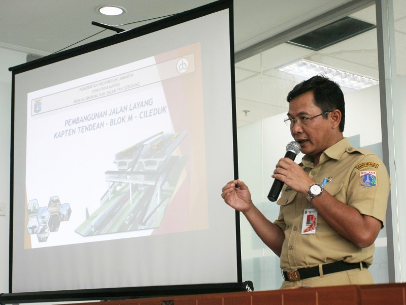 Kepala Dinas Bina Marga DKI Jakarta, Yusmada Faisal melakukan konfrensi pers terkait pembangunan Jalan Layang Non Tol (JLNT) Transjakarta koridor XIII ruas Ciledug-Kapten Tendean di Kantor Dinas Bina Marga DKI Jakarta, Jalan Taman Jati Baru, Jakarta Pusat, Senin (8/1). Dalam konfrensi pers yang dihadiri Dirut Transjakarta, Budi Kaliwono ini, pihak Transjakarta memproyeksikan JLNT Transjakarta koridor XIII ruas Ciledug-Kapten Tendean akan beroperasi pada Juni 2017 mendatang. Setelah Dinas Marga Provinsi DKI Jakarta menyelesaikan proyek pembangunan sekitar Februari-Maret 2017. (Foto: Punto/beritajakarta.com)