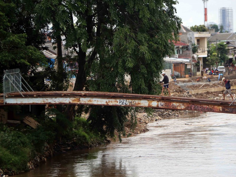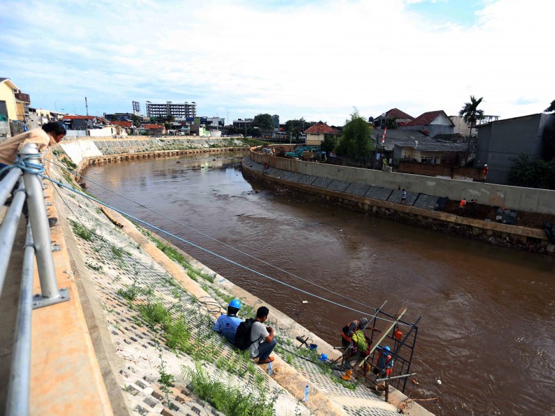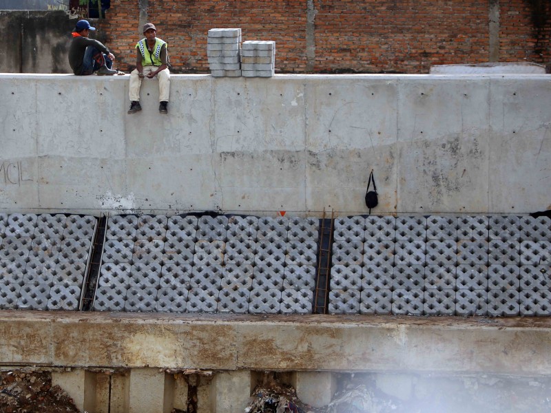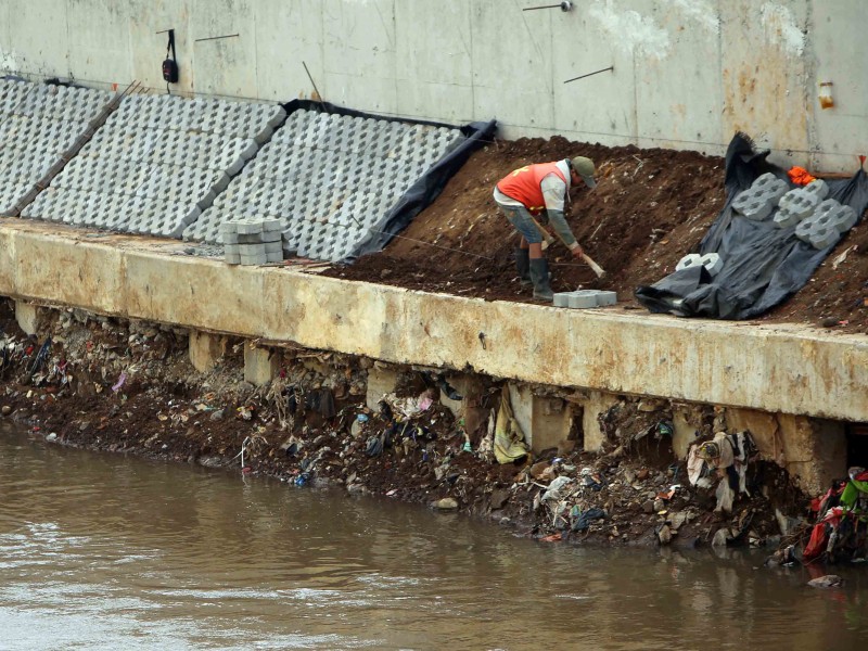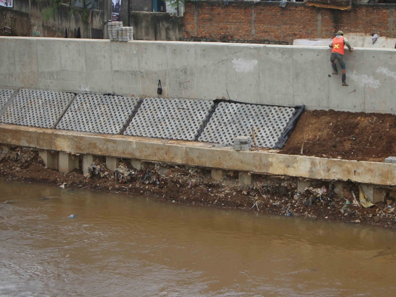 Dinding Sungai Ciliwung Diperkuat Dengan Konblok