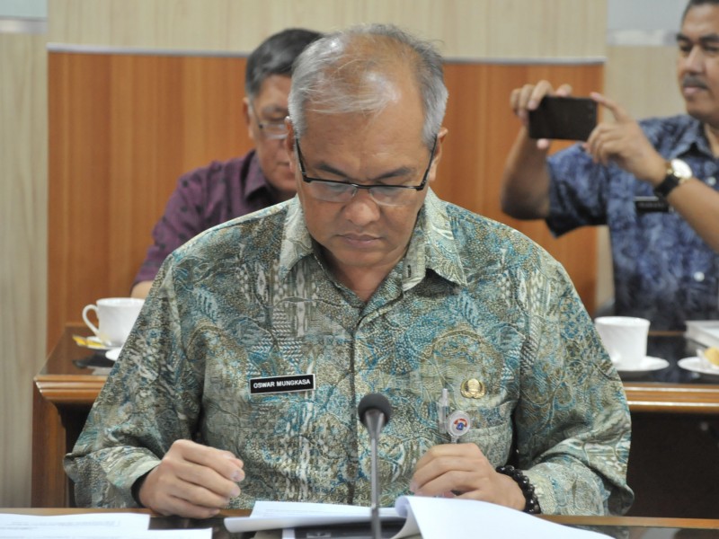 Pelaksana Tugas (Plt) Gubernur DKI Jakarta, Sumarsono menghadiri rapat bersama Menteri Lingkungan Hidup dan Kehutanan (KLHK) Republik Indonesia, Siti Nurbaya di Kantor KLHK, Jalan Gatot Subroto, Jakarta Pusat, Jumat (13/1). Rapat yang juga dihadiri Deputi Gubernur Bidang Tata Ruang dan Lingkungan Hidup DKI Jakarta, Ozwar Muadzin serta kepala SKPD terkait membahas kelanjutan reklamasi teluk Jakarta. (Foto: Reza/beritajakarta.com)