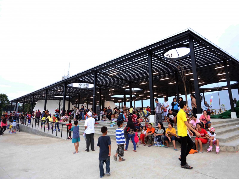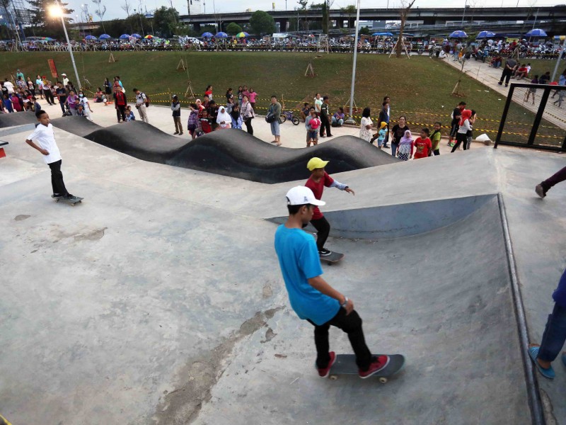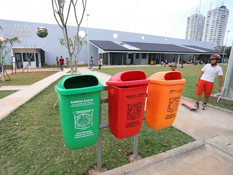 Warga sekitar Kalijodo menghabiskan waktu sore di Ruang Terbuka Hijau (RTH)- Ruang Publik Terpadu Ramah Anak (RPTRA) Kalijodo, Jalan Pangeran Tubagus Angke, Jakarta Barat, Sabtu (14/1). Meskipun belum diresmikan RTH- RPTRA yang memiliki sarana fun bike, taman bermain, ruang perpustakaan, jogging track dan arena skate board ini sudah dimanfaatkan warga sekitar untuk berkumpul, bermain dan berolahraga. (Foto: Punto/beritajakarta.com)