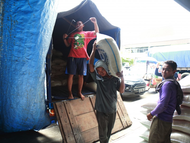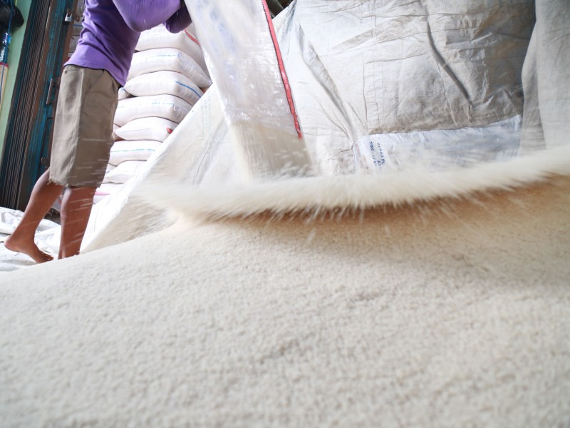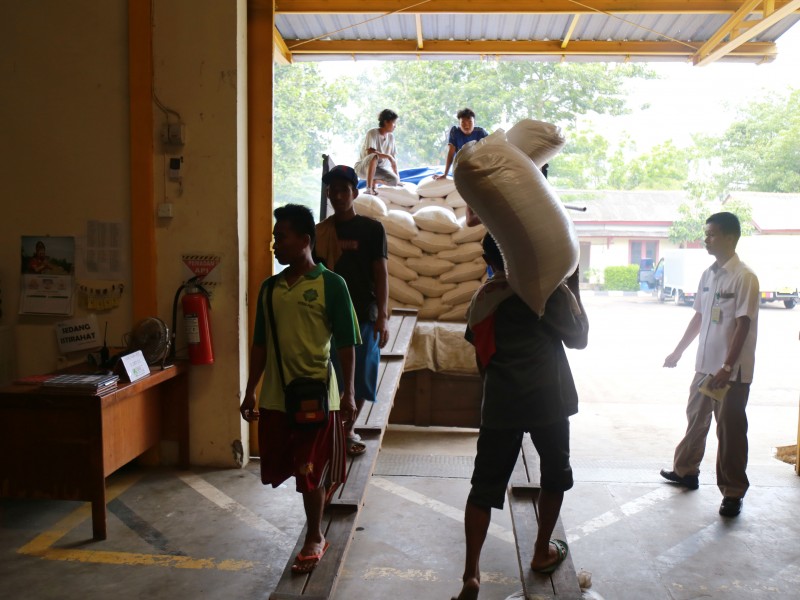 Stok beras memenuhi gudang PT Food Station Tjipinang Jaya, di Pasar Induk Beras Cipinang (PIBC), Jakarta Timur, Senin (16/1). PT Food Station Tjipinang Jaya jamin stok beras di DKI Jakarta selama musim penghujan hingga akhir Februari dipastikan aman. Stok beras di PIBC sampai pertengahan bulan Januari mencapai 33.346 ton dan juga hingga bulan Februari nanti pihak Bulog akan memberikan tambahan hingga 20 ribu ton. (Foto: Reza/beritajakarta.com)