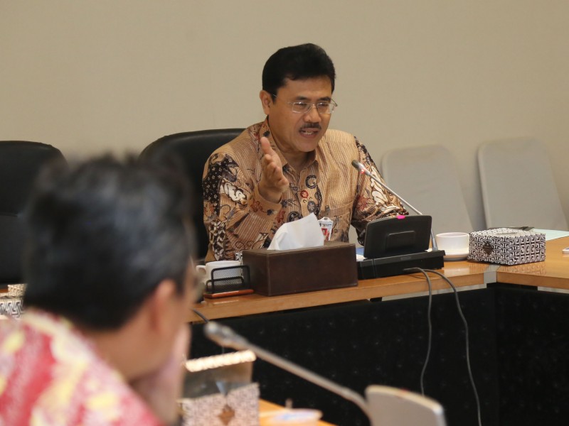Asisten Bidang Pemerintahan Sekretaris Daerah Provinsi DKI Jakarta, Bambang Sugiyono memimpin rapat pembahasan revisi Undang - Undang RI Nomor 29 Tahun 2007 tentang Pemerintahan Provinsi DKI Jakarta sebagai Ibukota Negara Kesatuan Republik Indonesia, di Balai Kota DKI Jakarta, Jumat (20/1). Setidaknya ada 11 urusan yang akan diusulkan dalam revisi. Dikatakan Bambang, ke-11 urusan tersebut diantaranya, seperti masalah kelembagaan, lingkungan, tata ruang, serta budaya. Khusus tata ruang yang akan diusulkan seperti aturan mengenai bawan tanah. (Foto: Punto/beritajakarta.com)