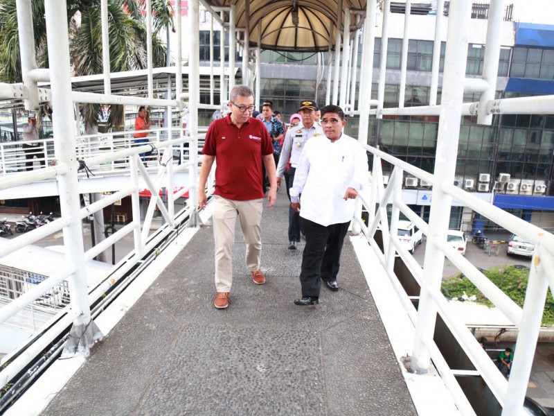 Pelaksana Tugas (Plt) Gubernur DKI Jakarta, Sumarsono meresmikan pagelaran musik bertajuk Transjakarta Symphony di Halte Transjakarta Harmoni, Jakarta Pusat, Sabtu (21/1). Uniknya pagelaran musik ini akan diadakan setiap satu bulan sekali di Halte Transjakarta untuk memberikan hiburan bagi para pengguna bus Transjakarta. (Foto: Reza/beritajakarta.com)