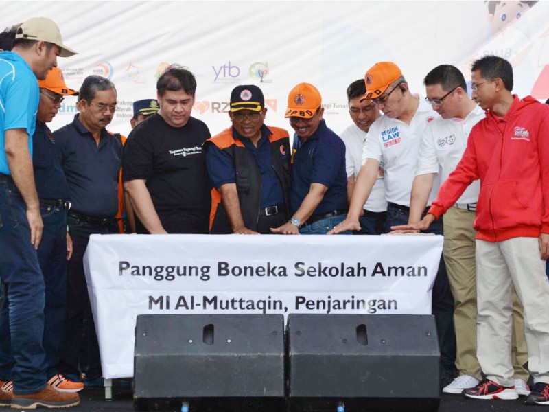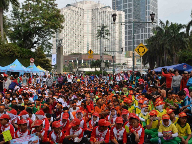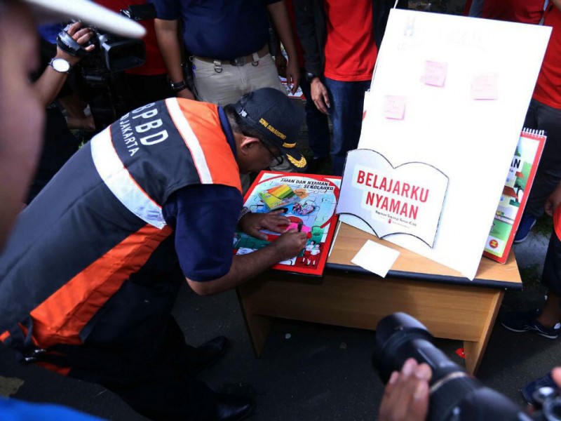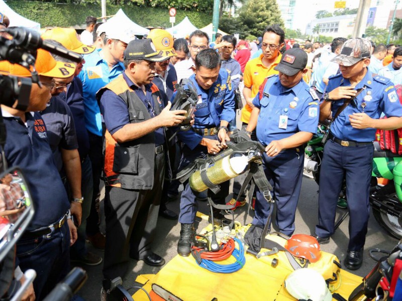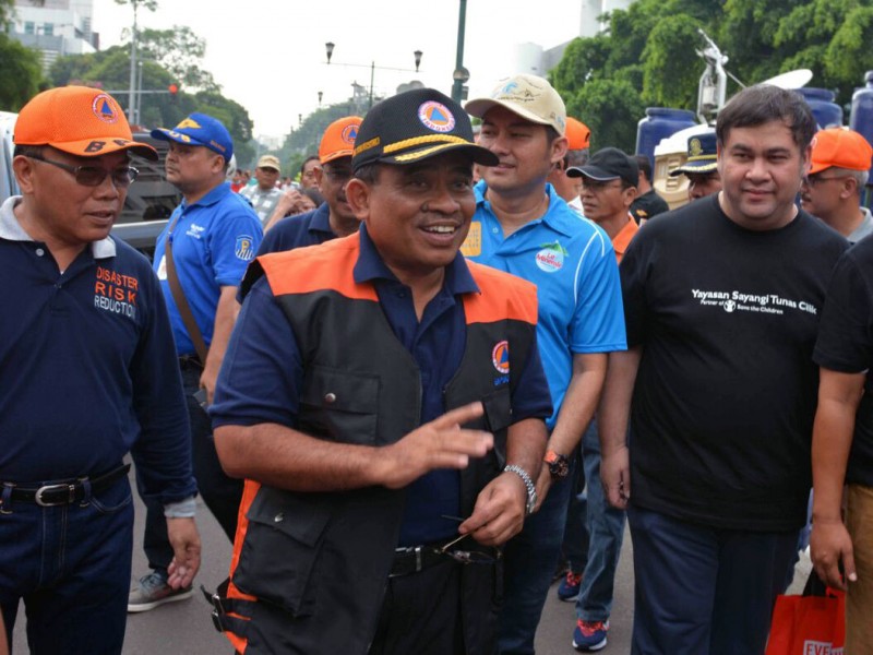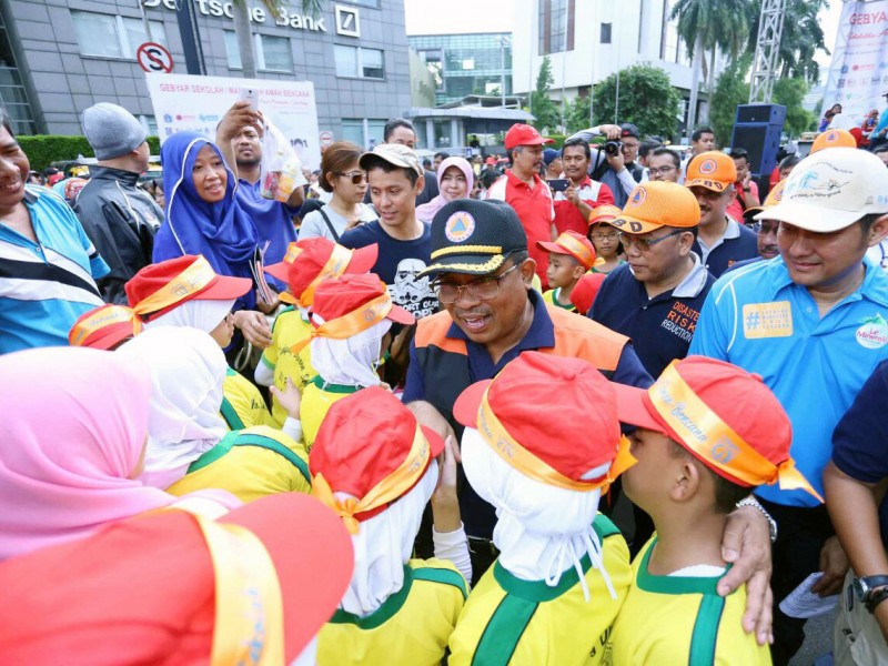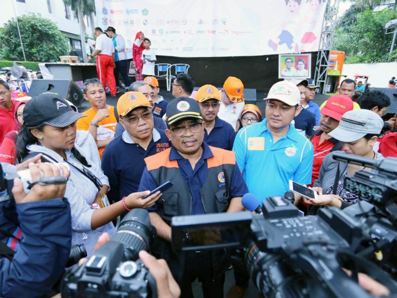 Pelaksana Tugas (Plt) Gubernur DKI Jakarta, Sumarsono menghadiri Gebyar Sekolah/Madrasah Aman Bencana (SMAB) di kawasan Bundaran HI, Jakarta Pusat, Minggu (22/1). Gebyar SMAB ini mengankat tema Membangun Jakarta dengan 4P : Public, Private, People, dan Partnership. (Foto: Punto/beritajakarta.com)