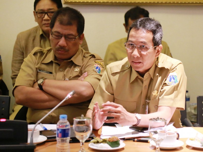 Pelaksana Tugas (Plt) Gubernur DKI Jakarta, Sumarsono memimpin rapat rutin bersama jajaran Satuan Kerja Perangkat Daerah (SKPD) di Balai Kota DKI Jakarta, Senin (23/1). Salah satu pembahasan dalam rapim kali ini terkait program rencana normalisasi kali krukut Jakarta Selatan. (Foto: Reza/beritajakarta.com)