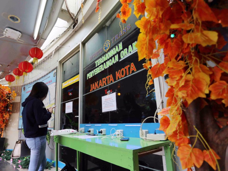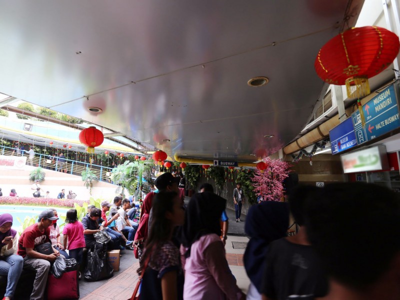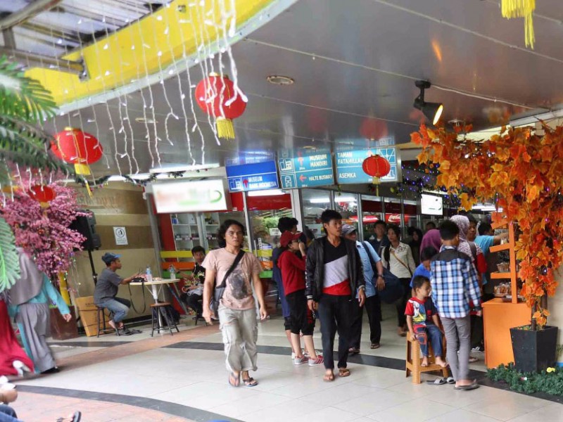 Pernak-pernik perayaan Imlek mewarnai Terowongan Penyeberangan Orang (TPO) di Kota Tua, Jakarta Barat, Senin (23/1). Berbagai macam hiasan bernuansa Imlek terpampang di TPO, dari sisi Timur, Stasiun Kota dan sisi Barat, Halte Transjakarta Kota. Adapun pernak-pernik yang telah dipasang sejak awal Januari ini yakni bunga yang menempel di sepanjang tembok, pohon sakura, lampion, serta lampu warna warni yang menempel di setiap pohon dan bunga. (Foto: Punto/beritajakarta.com)