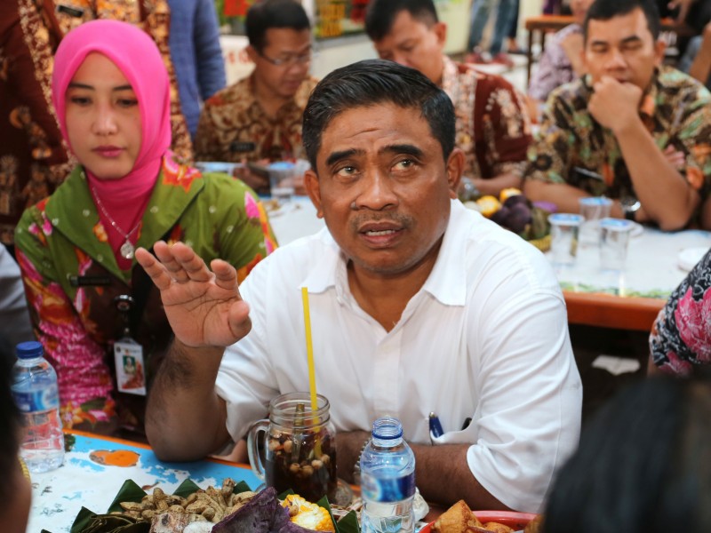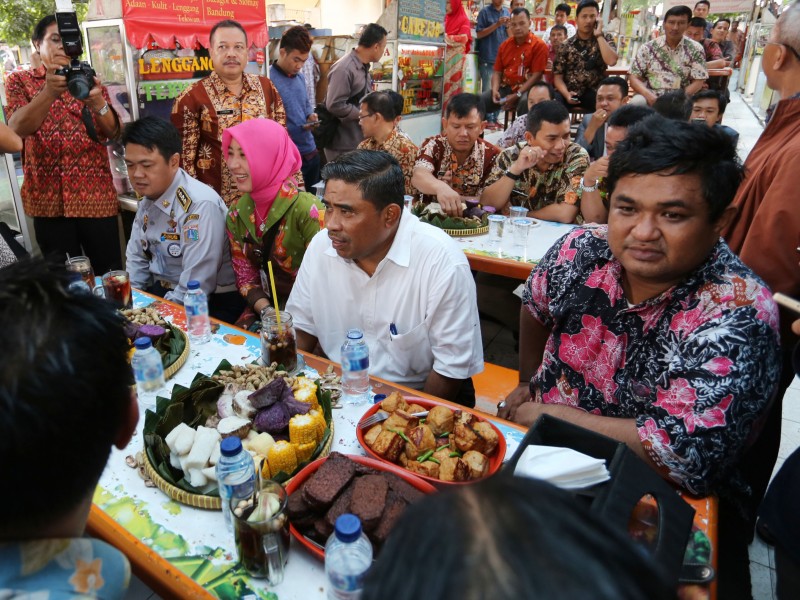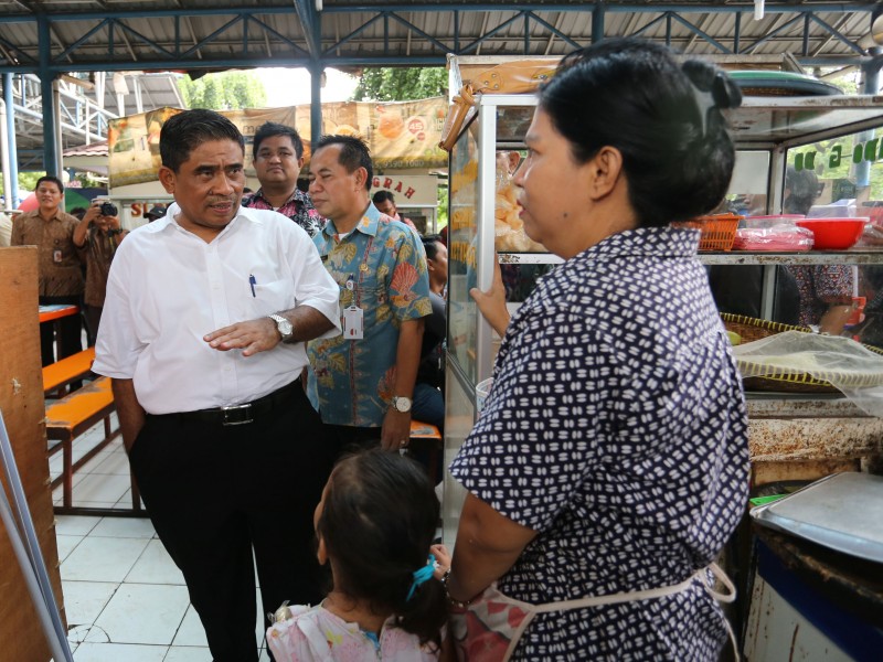 Pelaksana Tugas (Plt) Gubernur DKI Jakarta, Sumarsono meninjau Lokasi Sementara (Loksem) Nyi Ageng Serang di Jalan Nyi Ageng Serang, Kuningan, Jakarta Selatan, Jumat (27/1). Dalam peninjauan ini Plt Gubernur melakukan dialog untuk mendapatkan masukan dari para pedagang di loksem . (Foto: Punto/beritajakarta.com)