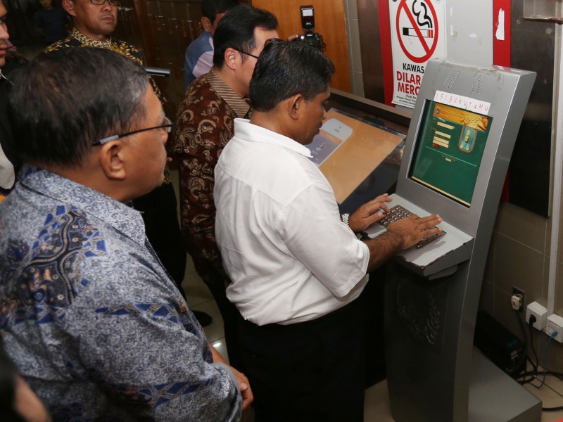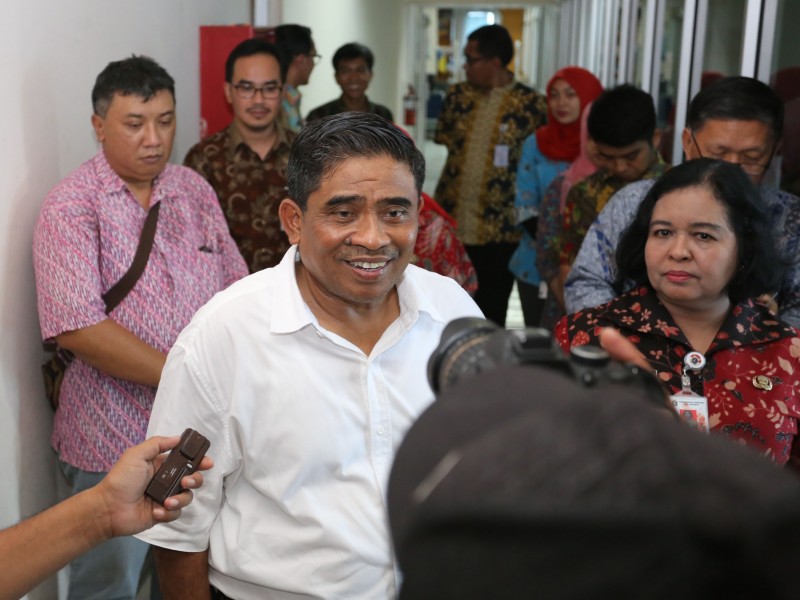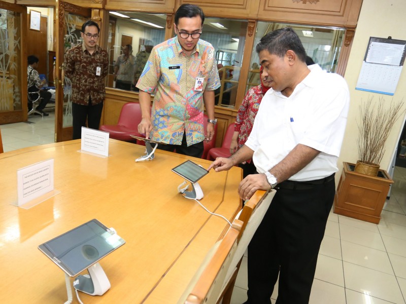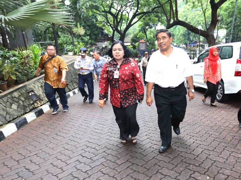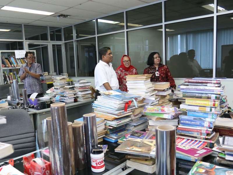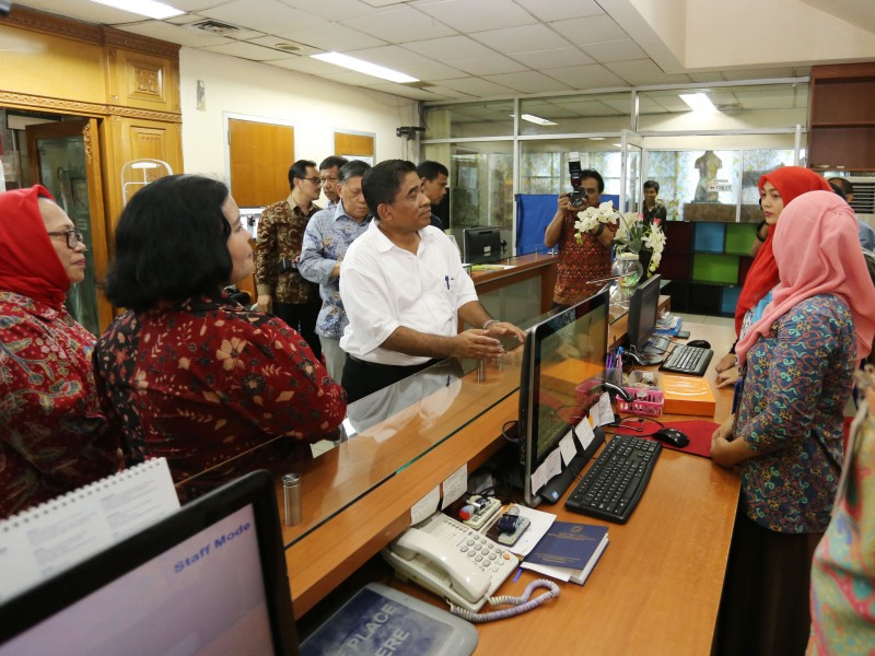 Pelaksana Tugas (Plt) Gubernur DKI Jakarta, Sumarsono mengapresiasi pengelolaan perpustakaan daerah di Gedung Nyi Ageng Serang, Karet Kuningan, Setiabudi, Jakarta Selatan, Jumat (27/1). Sumarsono menilai pengelolaan perpustakaan sudah cukup baik, menggunakan sistem digital. Buku-buku yang rusak tidak dibuang tapi direnovasi. (Foto: Punto/beritajakarta.com)
