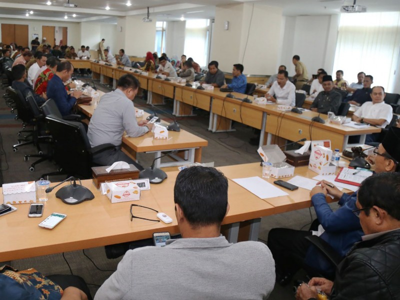Dewan Perwakilan Rakyat Daerah (DPRD) Provinsi DKI Jakarta menerima kunjungan kerja dari anggota DPRD Provinsi Sulawesi Selatan dan Jawa Tengah serta Kota Semarang dan Batam, di ruang rapat serbaguna Lantai 3, DPRD Provinsi DKI Jakarta, Selasa (31/1). Maksud kedatangan anggota dewan dari empat daerah yang berjumlah 135 orang ini untuk mencari bahan masukan terkait tunjangan kerja dewan dan proses penyusunan Organisasi Perangkat Daerah (OPD). (Foto: Punto/beritajakarta.com)