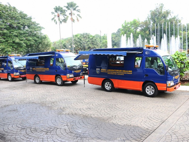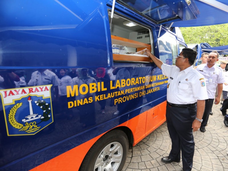 Sebanyak enam mobil laboratorium (moblab) keliling diresmikan oleh Pelaksana Tugas (Plt) Gubernur DKI Jakarta, Sumarsono di Balaikota DKI Jakarta, Rabu (2/1). Moblab ini, akan digunakan petugas operasional untuk mengecek secara rutin berbagai kebutuhan pangan yang beredar di pasar agar aman dikonsumsi warga Ibukota. (Foto: Reza/beritajakarta.com)