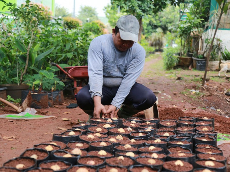 Puluhan ribu bibit tanaman produktif ditanam di kebun Unit pelaksana teknis (UPT) Pusat Pengembangan Benih dan Proteksi Tanaman DKI Jakarta di Jalan RM Harsono, Ragunan, Jakarta Selatan, Kamis, (2/2). Di tempat ini terdapat berbagai macam bibit tanaman produktif seperti pohon durian, mangga, rambutan, belimbing, sirsak, jeruk dan lain sebagainya. Yang menarik, bibit tanaman ini juga bisa dimiliki secara gratis bagi warga pemilik KTP DKI Jakarta. (Foto: Reza/beritajakarta.com).