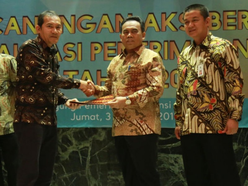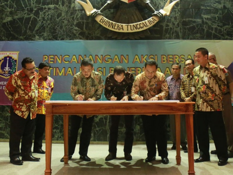 Pemerintah Provinsi (Pemprov) DKI Jakarta melakukan Pencanangan Aksi dan Komitmen Bersama Optimalisasi Penerimaan Daerah di Balaikota DKI Jakarta, Jumat (3/2). Dengan adanya aksi ini diharapkan penerimaan daerah tahun 2017 bisa lebih maksimal. (Foto: Reza/beritajakarta.com)