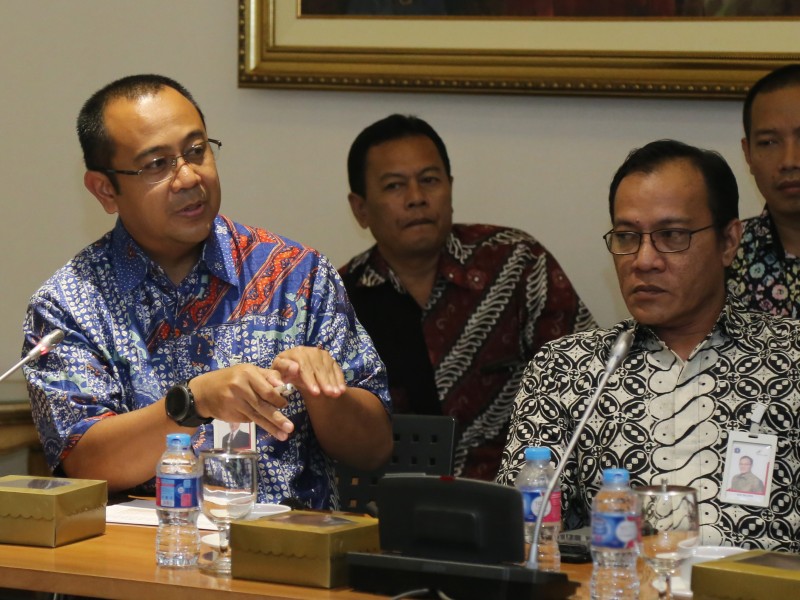 Jajaran direksi PD Pasar Jaya menemui Plt Gubernur DKI Jakarta, Sumarsono di Balaikota DKI Jakarta, Kamis (2/3). Pertemuan ini terkait evaluasi sistem pengelolaan PD Pasar Jaya secara keseluruhan yang selama ini masih butuh banyak perbaikan. Dalam rapat tersebut turut hadir Kepala Dinas Koperasi Usaha Kecil Menengah dan Perdagangan ( KUKMP ) DKI Jakarta, Irwandi serta jajaran direksi Bank DKI, PT Pembangunan Jaya dan PT Food Station Tjipinang Jaya. (Foto: Punto /beritajakarta.com)