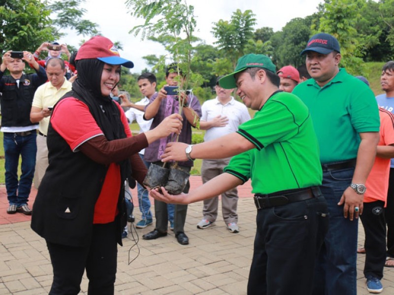 Pemerintah Provinsi DKI Jakarta bersama Organisasi Persaudaraan NKRI Gemilang melakukan penanaman 1000 pohon dan penebaran 1000 benih ikan di Taman Cempaka, Kelurahan Cilangkap, Kecamatan Cipayung, Jakarta Timur, Sabtu (4/2). Dengan adanya program tebar benih ikan dan penanaman pohon diharapkan dapat mengetuk hati masyarakat untuk lebih mencintai taman dan penghijauan di Jakarta. (Foto: Reza/beritajakarta.com)