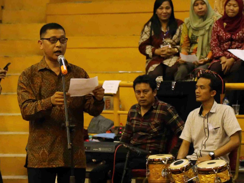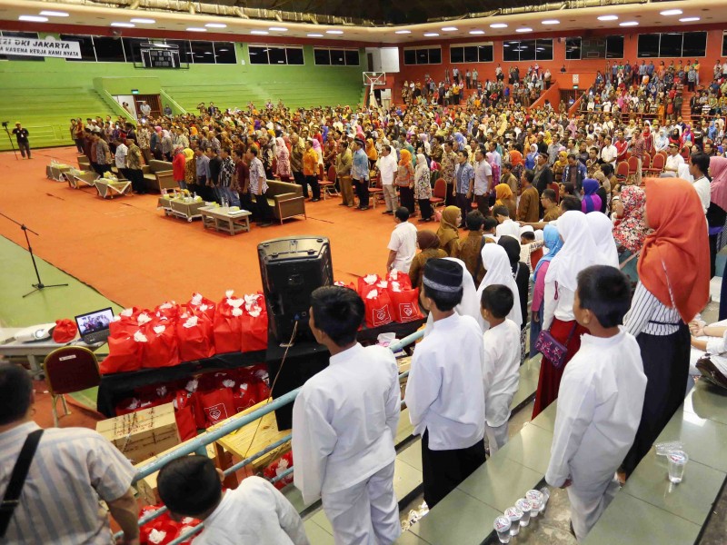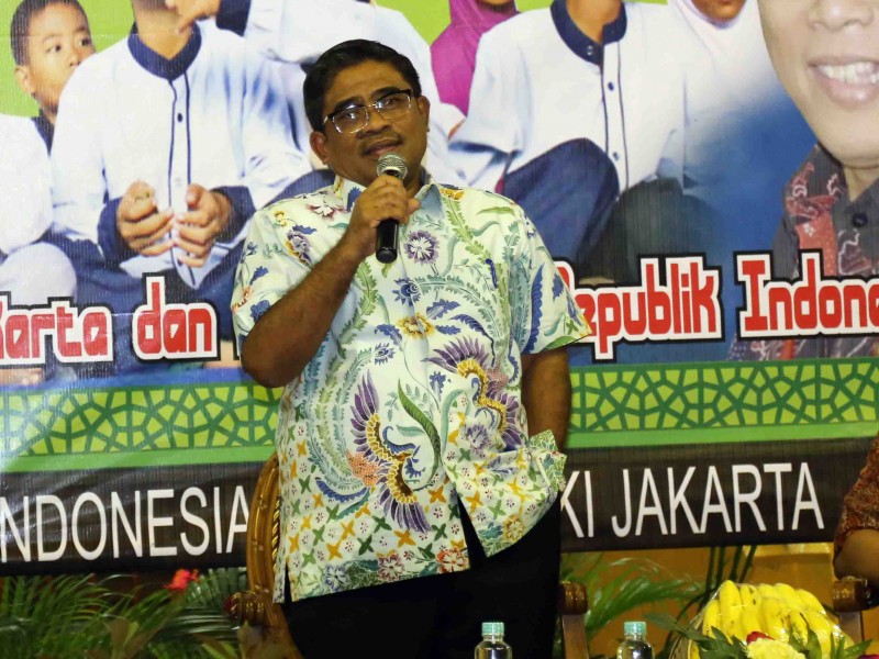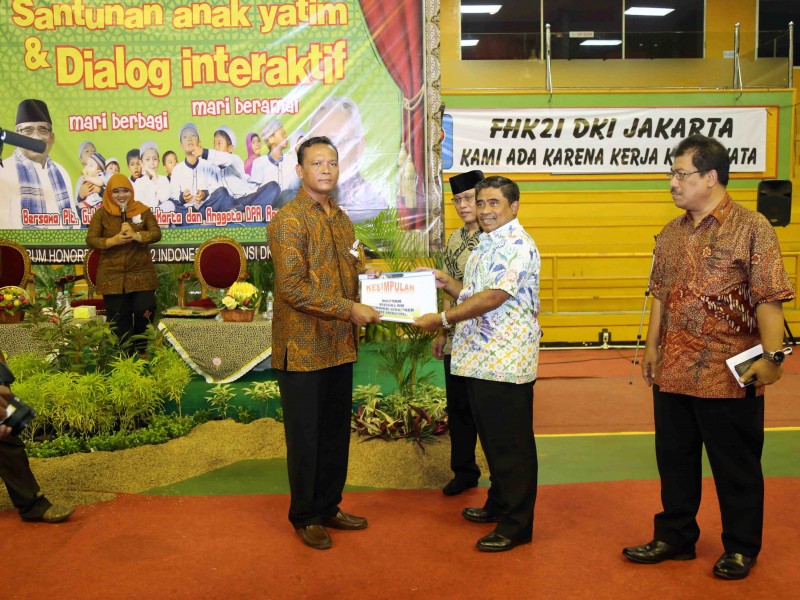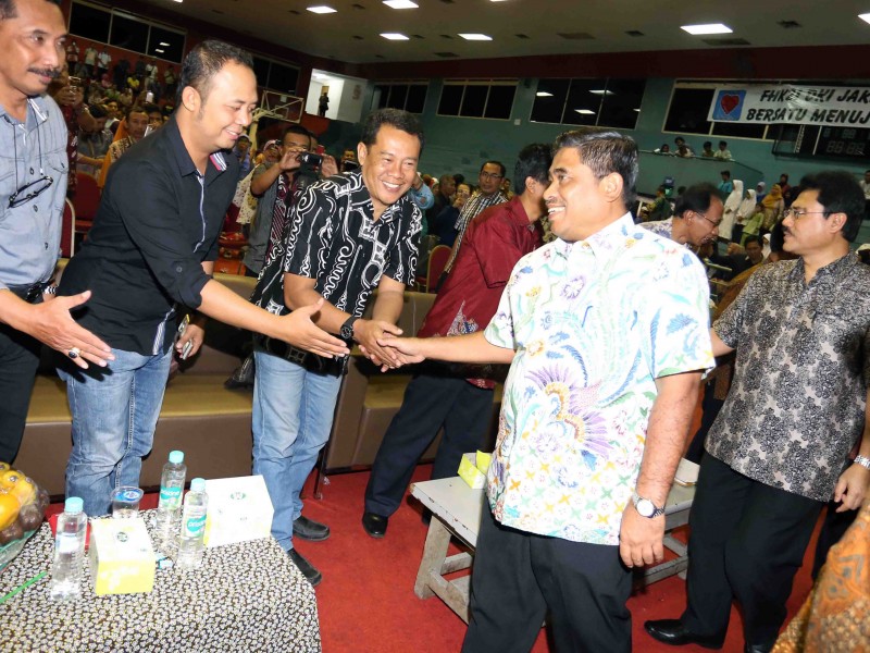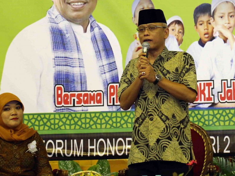Pelaksanan Tugas (Plt) Gubernur DKI Jakarta, Sumarsono menghadiri acara Forum Honorer Kategori 2 Indonesia (FHK2I) di Gelanggang Mahasiswa Soemantri Brojonegoro, Jalan HR Rasuna Said, Kuningan, Jakarta Selatan, Minggu (2/5). Acara ini beragendakan pembahasan permasalahan PHL DKI Jakarta (UMP 2017) dan juga guna mendengarkan penyampaian hasil Paripurna Revisi UU ASN serta penyerahan santunan kepada anak yatim. (Foto: Punto/beritajakarta.com)