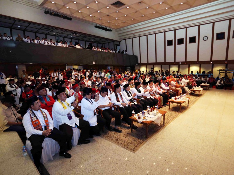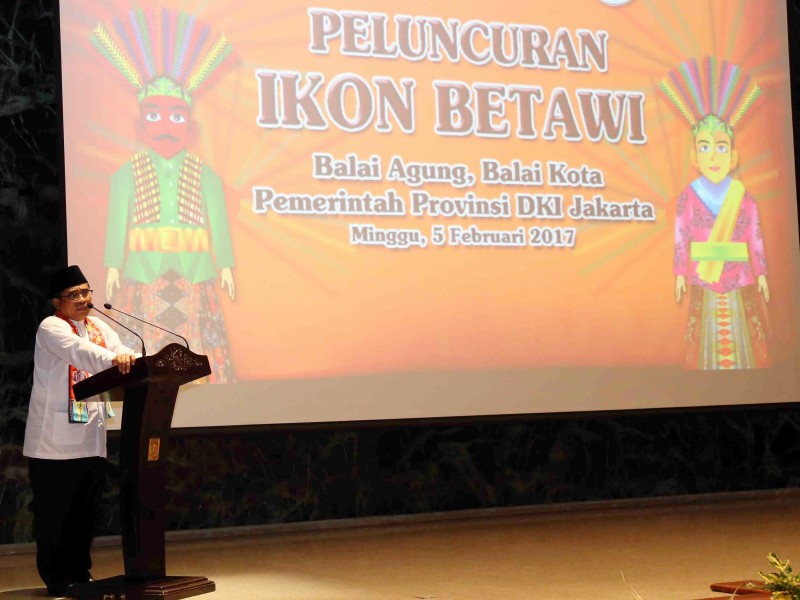 Plt Gubernur DKI Jakarta, Sumarsono meresmikan delapan ikon budaya Betawi di Balai Kota Jakarta, Minggu (2/5). Delapan ikon budaya Betawi tersebut adalah Ondel - Ondel, Kembang Kelapa, Ornamen Gigi Balang, Baju Sadariah, Kebaya Kerancang, Batik Betawi, Kerak Telor dan Bir Pletok. (Foto: Punto/beritajakarta.com)