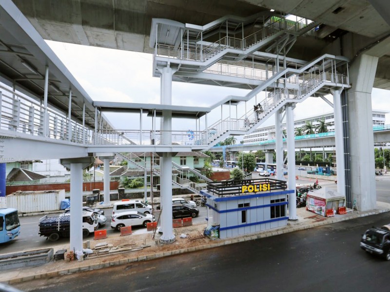PT Transjakarta akan menyiapkan lift di Halte CSW Koridor 13, Jakarta Selatan, Senin (6/2). Meski pembangunan koridor 13 Transjakarta belum rampung, Halte dengan ketinggian 23 meter itu hanya bisa diakses menggunakan tangga besi dengan 120 anak tangga. Tak ada lift atau eskalator untuk penumpang dari bawah menuju halte. (Foto: Punto/beritajakarta)