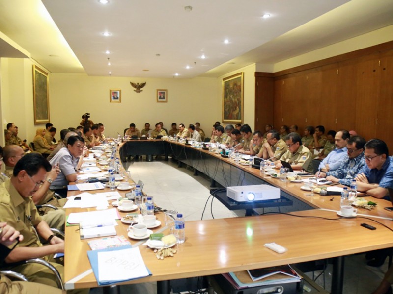 Pelaksana Tugas (Plt) Gubernur DKI Jakarta, Sumarsono memimpin rapat rutin bersama jajaran Satuan Kerja Perangkat Daerah (SKPD) di Balai Kota DKI Jakarta, Senin (6/2). Salah satu fokus pembahasan dalam rapim kali ini terkait Tempat Penampungan Sementara (TPS) bagi pedagang Blok I dan II Pasar Senen yang terbakar . (Foto: Reza/beritajakarta.com)