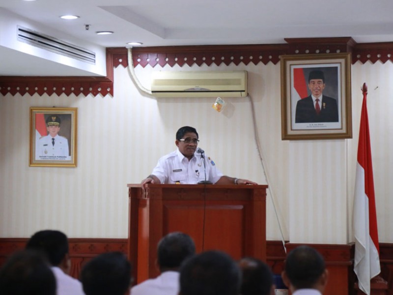 Pelaksana Tugas (Plt) Gubernur DKI Jakarta, Sumarsono melakukan kunjungan kerja (Kunker) ke kantor Wali Kota Jakarta Selatan, Rabu (8/2). Dalam kesempatan tersebut Sumarsono menyampaikan sejumlah hal kepada aparatur di Pemerintah Kota (Pemkot) Administrasi Jakarta Selatan salah satunya yakni amanat Peraturan Pemerintah (PP) Nomor 18 Tahun 2016 tentang Perangkat Daerah sudah diimplementasikan di Pemprov DKI. (Foto: Reza/beritajakarta.com)