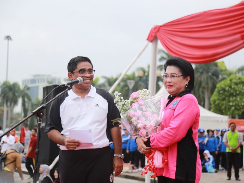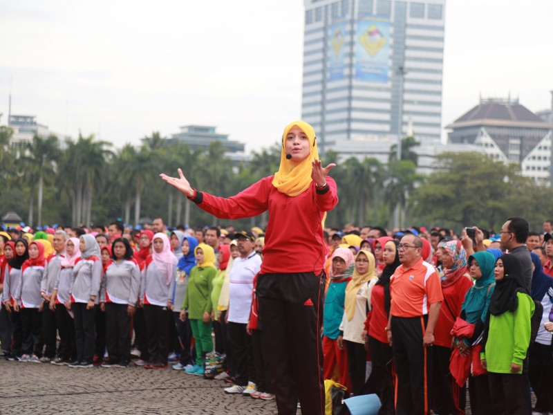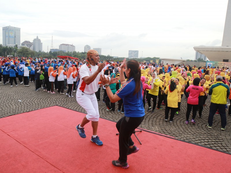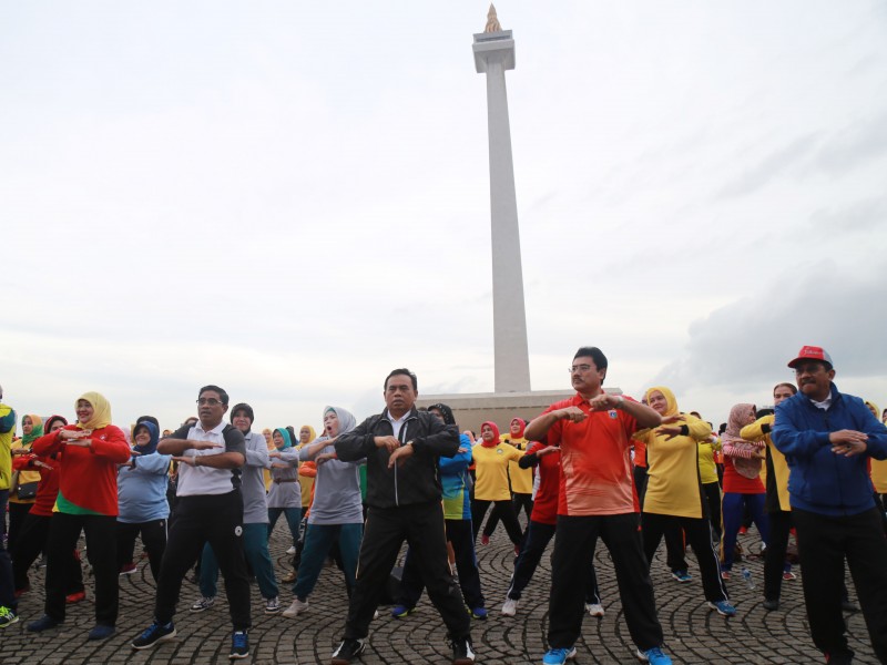 Pelaksana Tugas (Plt) Gubernur DKI Jakarta, Sumarsono bersama sekitar 30 ribu pegawai yang ada di lingkungan Pemprov DKI Jakarta menggelar senam bersama di kawasan Monas, Gambir, Jakarta Pusat, Kamis (9/2). Dalam kesempatan ini Sumarsono menyampaikan salam perpisahan kepada seluruh pegawai. (Foto: Reza/beritajakarta.com)