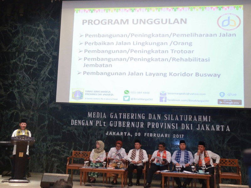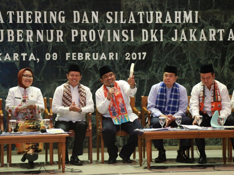 Pelaksana Tugas (Plt) Gubernur DKI Jakarta, Sumarsono menggelar Media Gathering di Balai Kota DKI Jakarta, Kamis (9/2). Acara ini digelar untuk memberikan penjelasan kepada media terkait progres pembangunan yang telah dijalankan oleh Pemprov DKI Jakarta selama kepemimpinan Plt Gubernur DKI Jakarta, Sumarsono. Acara tersebut selain diikuti oleh puluhan media juga dihadiri oleh sejumlah Satuan Perangkat Kerja Daerah (SKPD) diantaranya Dinas Komunikasi Informatika dan Statistik, Dinas Perhubungan, Dinas Bina Marga, Dinas Sumber Daya Air, Badan Pajak dan Retribusi Daerah, Dinas LIngkungan Hidup dan Dinas Pemberdayaan, Perlindungan Anak dan Pengendalian Penduduk. (Foto: Reza/beritajakarta.com)