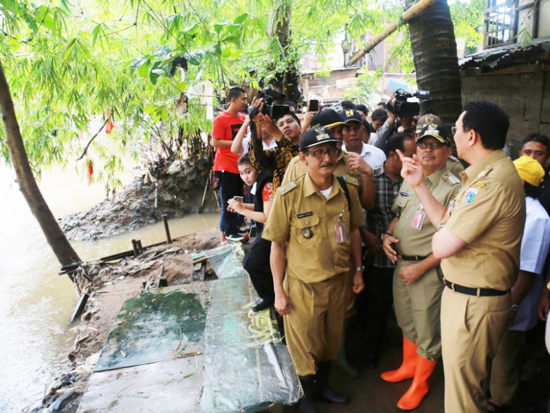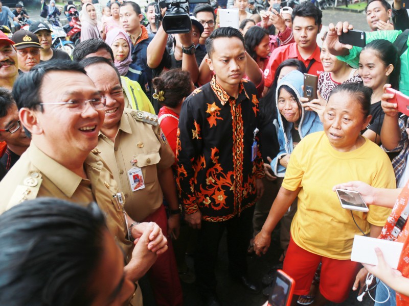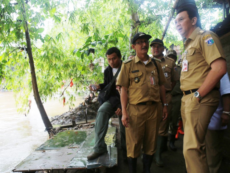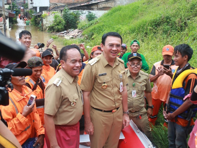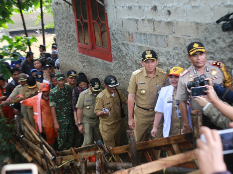 Gubernur DKI Jakarta, Basuki Tjahaja Purnama meninjau dua pemukiman warga yang terkena banjir di kawasan Bukit Duri, Jakarta Selatan dan Cipinang Melayu, Jakarta Timur, Senin (20/2). Dalam kunjunganya gubernur melihat langsung kondisi kawasan yang terkena banjir serta melakukan dialog dengan warga yang berada di pengungsian. (Foto: Reza/beritajakarta.com)