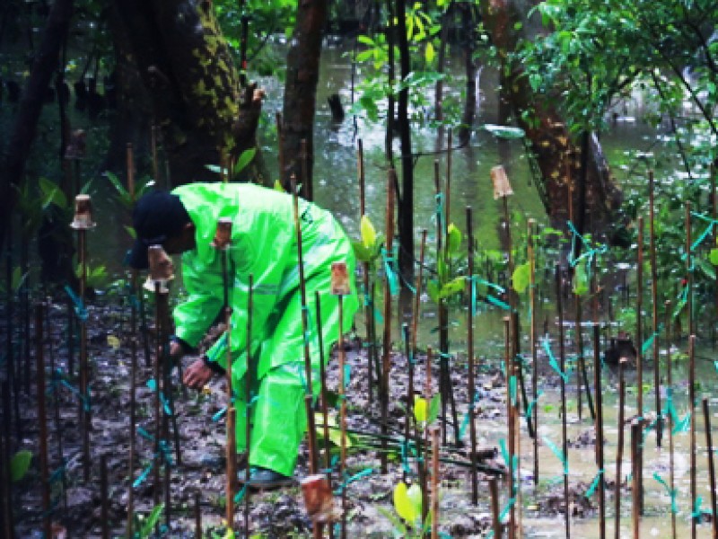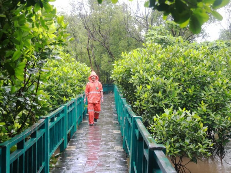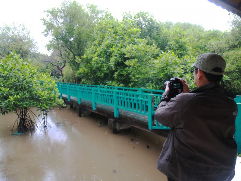 Kawasan hutan mangrove yang berlokasi di Jalan Pantai Indah Utara I, Kelurahan Kapuk Muara, Penjaringan, Jakarta Utara, dengan luas 23 hektare dan dipenuhi dengan tanaman bakau atau mangrove. Kawasan ini tak hanya sebagai pelindung garis pantai dari abrasi dan tempat pembesaran banyak jenis ikan laut, akan tetapi kawasan hutan mangrove ini juga bisa menjadi pilihan untuk berwisata bersama keluarga di akhir pekan dengan menikmati suasana alam yang asri, sejuk dan tenang. Selasa (21/2) (Foto: Reza/beritajakarta.com)