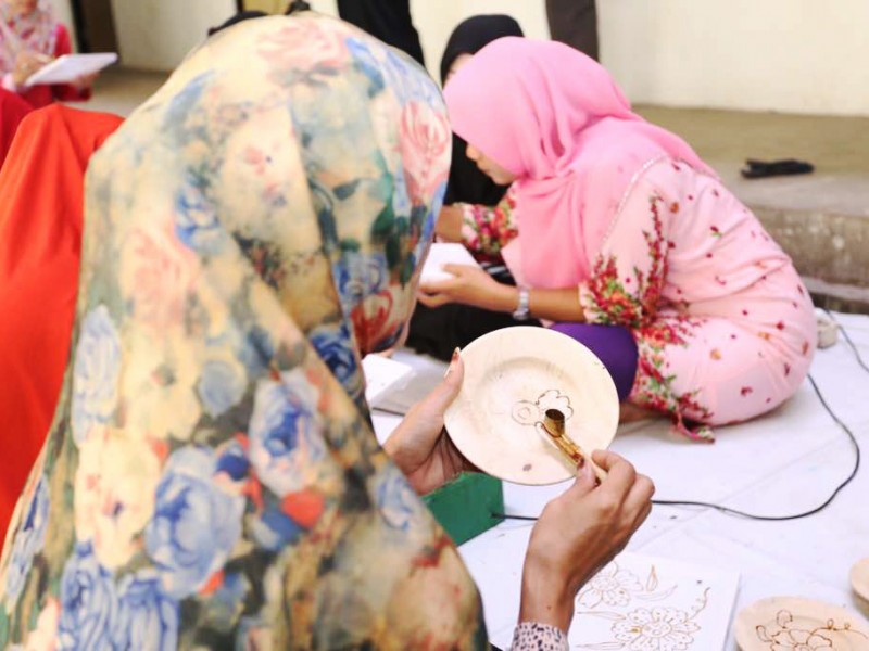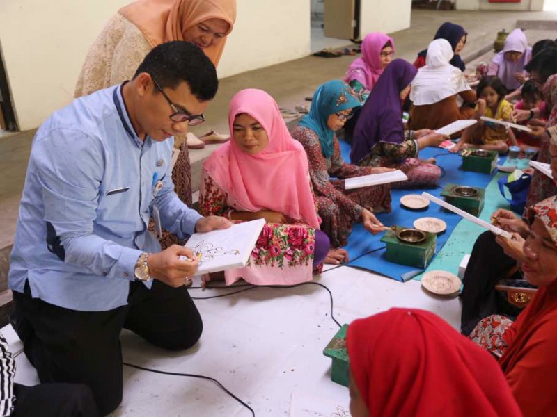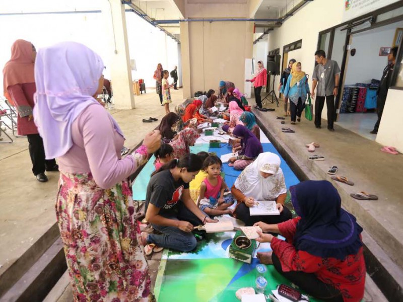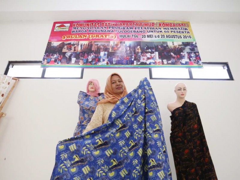 Sebanyak 65 orang warga Rumah Susun (Rusun) Pulogebang, Jakarta Timur, mengikuti pelatihan membatik. Pantauan beritajakarta.com, Kamis (23/2), warga rusun tampak antusias dalam mengikuti pelatihan membatik dengan menggunakan canting dan juga alat cetak batik. Nantinya hasil karya warga ini akan dibantu dalam pemasarannya oleh Dinas Koperasi Usaha Kecil Menengah dan Perdagangan (KUKMP) DKI Jakarta. (Foto : Punto/beritajakarta.com)