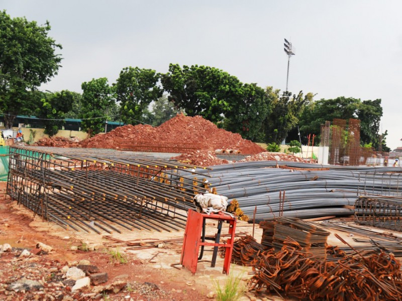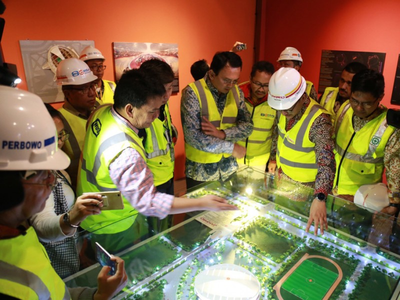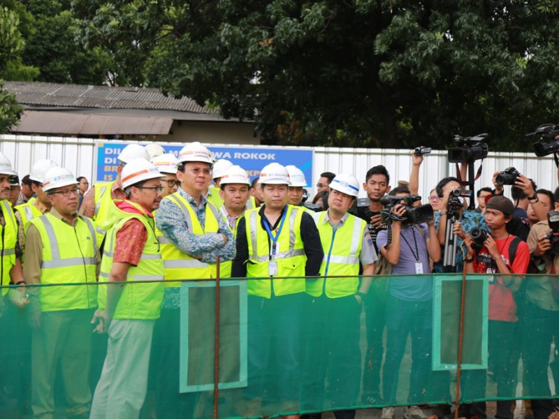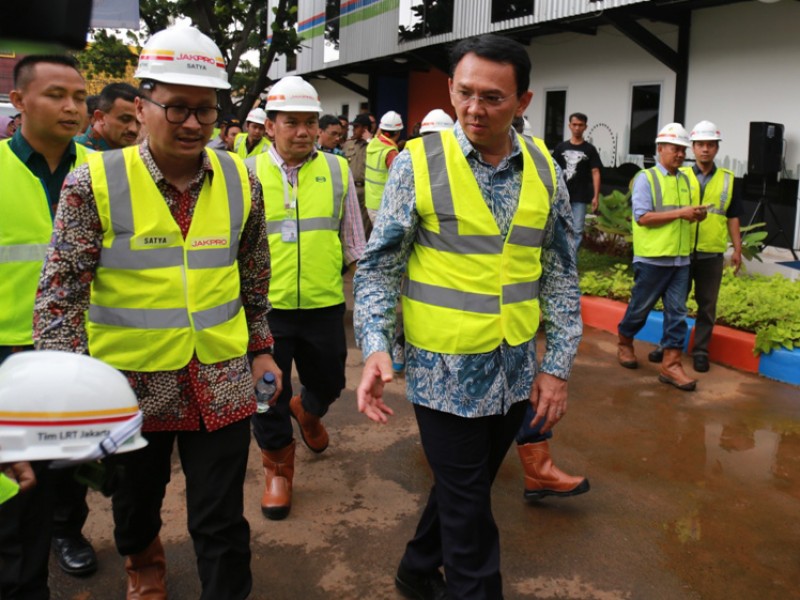 Gubernur DKI Jakarta, Basuki Tjahaja Purnama melakukan pengecekan pembangunan arena balap sepeda Velodrome di Rawamangun, Jakarta Timur, Jumat (24/2). Dalam kunjungan ini Gubernur mendapatkan laporan terkait progres pembangunan Velodrome . (Foto: Reza/beritajakarta.com)