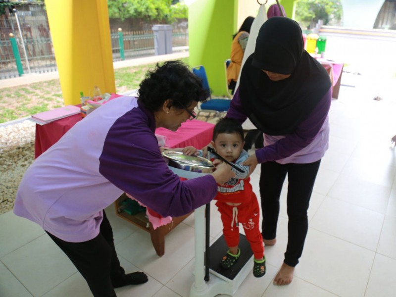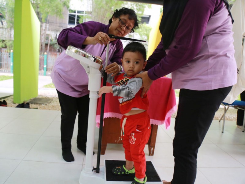 Posyandu Kelurahan Gondangdia mengadakan pelayanan kesehatan di Ruang Publik Terpadu Ramah Anak (RPTRA) Gondangdia, Jalan Cikini, Kelurahan Gondangdia, Kecamatan Menteng, Jakarta Pusat, Senin (27/2). Pelayanan kesehatan ini dilakukan untuk mengetahui kondisi kesehatan serta tumbuh kembang pada anak dan balita di wilayah Kelurahan Gondangdia. (Foto: Reza/beritajakarta.com)