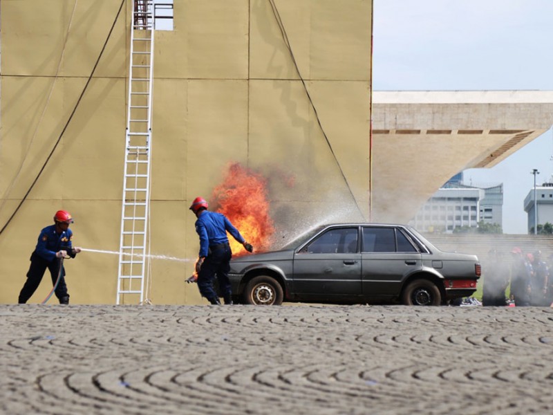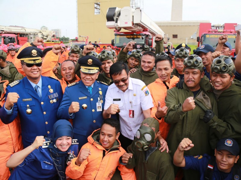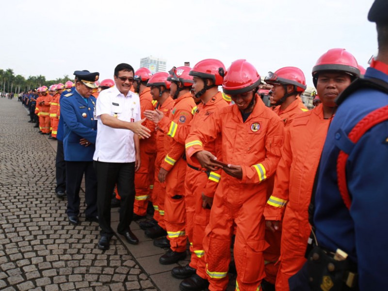 Wakil Gubernur DKI Jakarta, Djarot Saiful Hidayat menghadiri upacara peringatan ulang tahun Pemadam Kebakaran ke-98 di Lapangan Monas Silang Selatan, Jakarta Pusat, Rabu (1/3). Dalam upacara peringatan ini Menteri Dalam Negeri, Tjahjo Kumolo bertindak sebagai inspektur upacara. HUT ke-98 ini mengambil tema Dengan Semangat Kebhinekaan Pemadam Kebakaran Hadir Memberikan Perlindungan dan Rasa Nyaman Kepada Masyarakat. (Foto: Reza/beritajakarta.com)