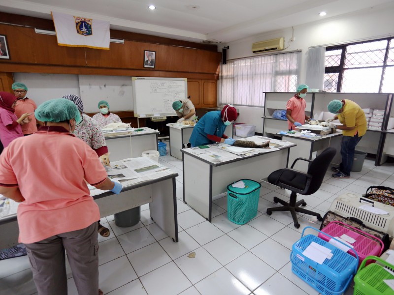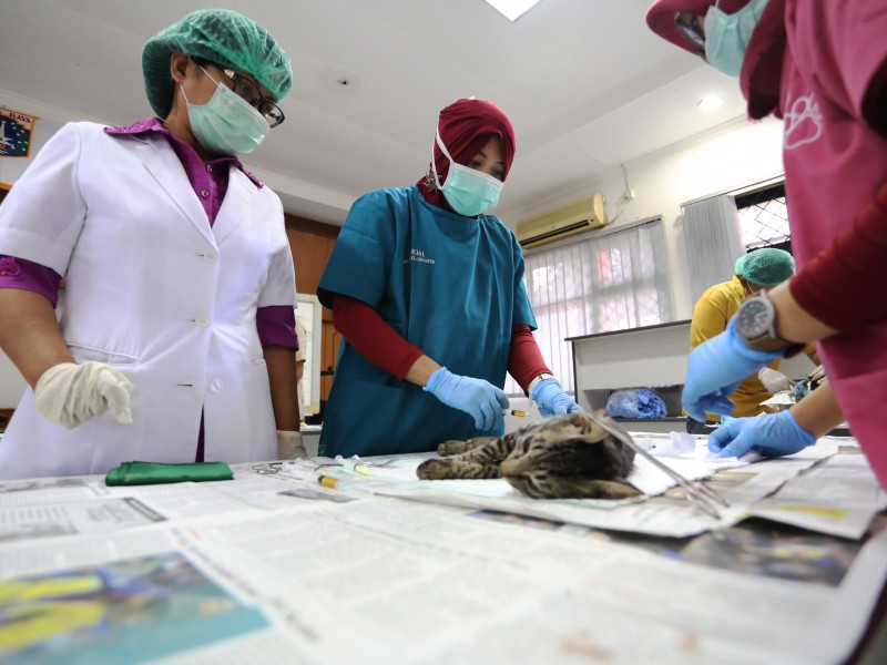 Dinas Ketahanan Pangan, Kelautan dan Pertanian (KPKP) DKI Jakarta melakukan vaksinasi dan sterilisasi kepada puluhan kucing secara gratis di Pusat Pelayanan Kesehatan Hewan, Jalan Harsono RM, Kelurahan Ragunan, Jakarta Selatan, Minggu (5/3). Pada kesempatan ini, puluhan ekor kucing disterilisasi dan mendapatkan vaksin rabies. (Foto: Punto/beritajakarta.com)