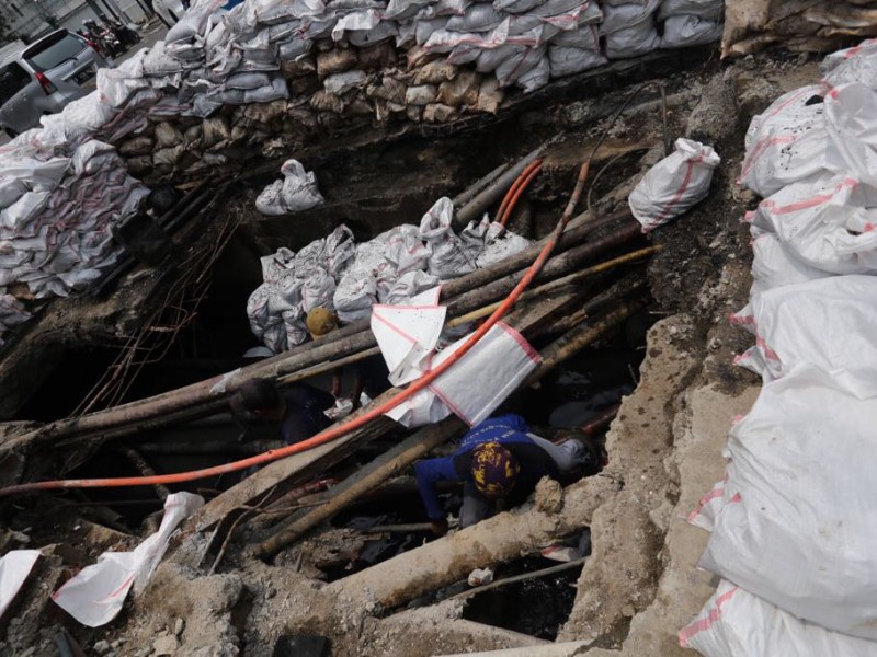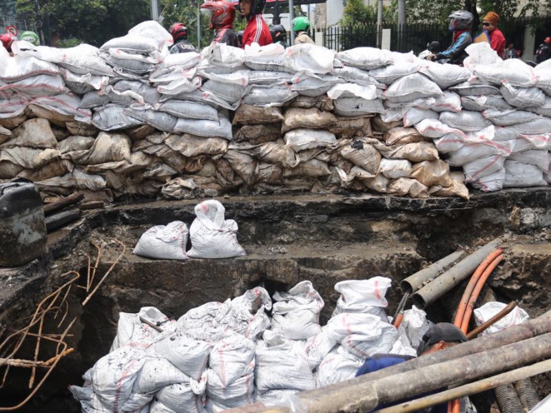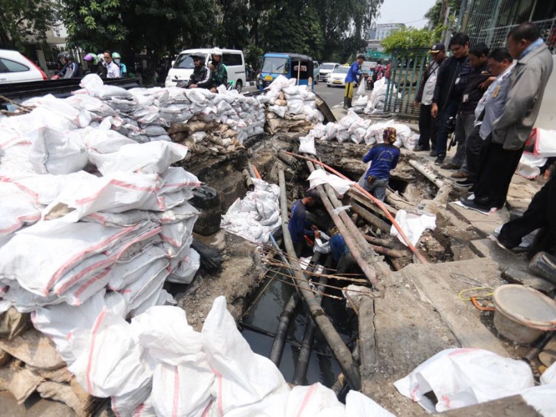 Suku Dinas Sumber Daya Air Jakarta Pusat melakukan pengecekan saluran penghubung (PHB) di sepanjang Jalan KH Wahid Hasyim, Menteng, Jakarta Pusat, Kamis (9/3). Hal ini guna menindaklanjuti genangan air yang terjadi dan adanya jalan yang ambles di sekitar perempatan ke Jalan Sabang. (Foto : Punto/beritajakarta.com)