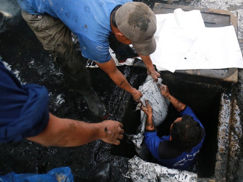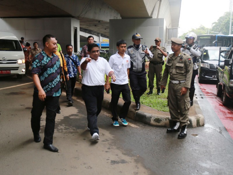 Pelaksana Tugas (Plt) Gubernur DKI Jakarta, Sumarsono melakukan peninjauan gorong-gorong di Jalan Gatot Subroto, Jakarta Selatan, Jumat (10/3). Peninjauan ini terkait ditemukannya sampah kulit kabel di dalam gorong-gorong beberapa waktu lalu. (Foto: Reza/beritajakarta.com)