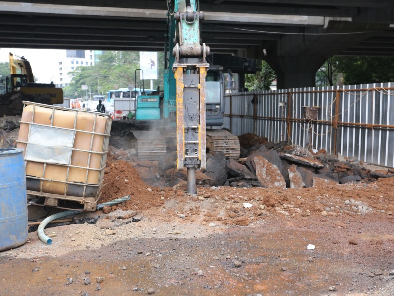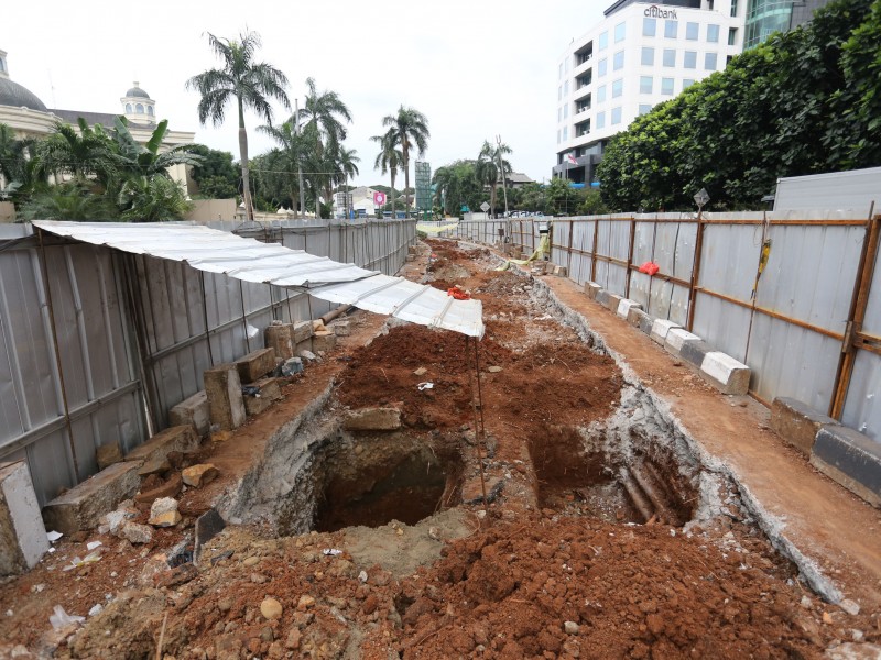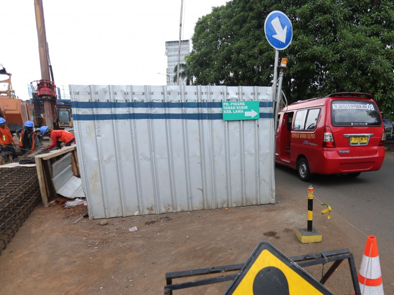 Sejumlah aktivitas pembangunan underpass di jalan RA Kartini, Kelurahan Pondok Pinang, Kebayoran Lama Jakarta Selatan mulai berjalan, Jumat (10/3). Para pekerja mulai membongkar aspal jalan dan melakukan pemagaran area penggalian underpass. Pembangunan underpass tersebut bertujuan untuk mengatasi kemacetan lalu lintas di ruas Pondok Indah-Ciputat serta ruas Fatmawati-Jalan Ciputat Raya dan sebaliknya. Pembangunannya sendiri ditargetkan rampung Desember 2017 mendatang. (Foto: Punto/beritajakarta.com)