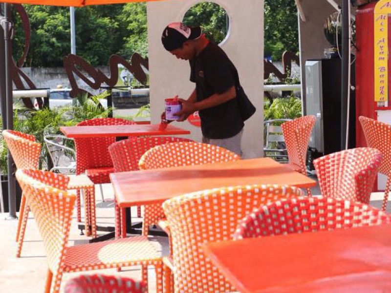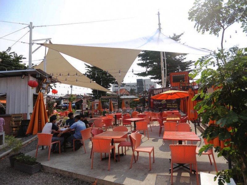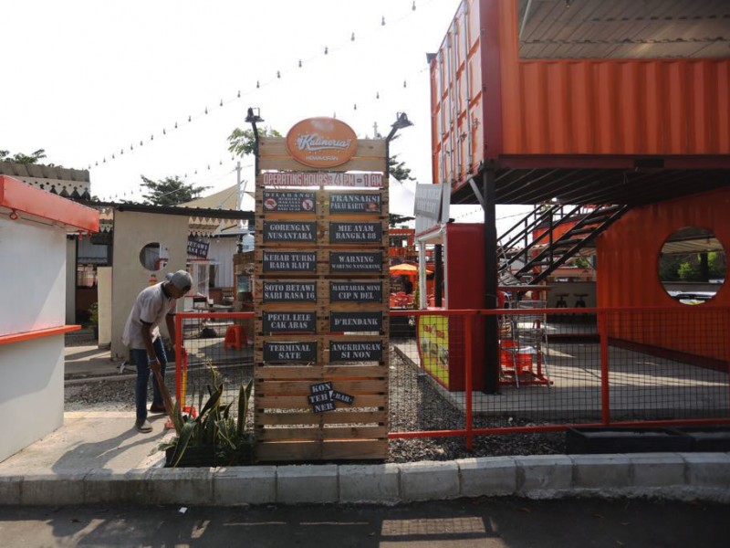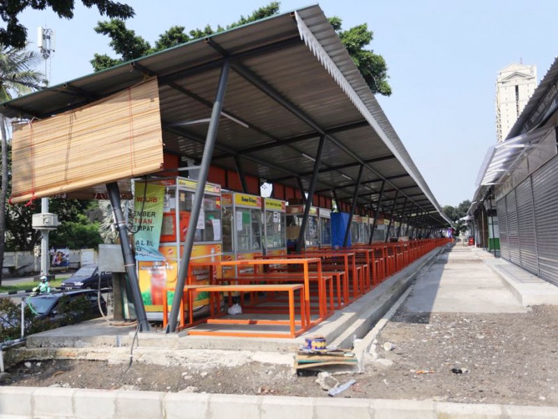 Dinas Koperasi Usaha Mikro Kecil Menengah dan Perdangan (KUMKMP) DKI Jakarta terus memperindah Kawasan Kuliner Lenggang Jakarta Kemayoran, Jakarta Pusat, Sabtu (11/3). Hal ini dilakukan guna memberikan kenyamanan serta daya tarik bagi para pecinta kuliner yang ingin berkunjung dan menikmati sajian kuliner di kawa san ini. (Foto: Punto/beritajakarta.com)