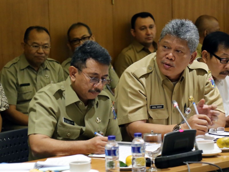 Plt Gubernur DKI Jakarta, Sumarsono memimpin rapat rutin bersama jajaran Satuan Kerja Perangkat Daerah (SKPD) di Balai Kota DKI Jakarta, Senin (13/3). Sejumlah Topik dibahas dalam Rapim tersebut diantaranya perbaikan Taman Lapangan Banteng oleh Dinas Kehutanan DKI Jakarta dan pembuatan konsep warung kecil usaha keluarga atau mandiri oleh PD Pasar Jaya. (Foto : Punto/beritajakarta.com)