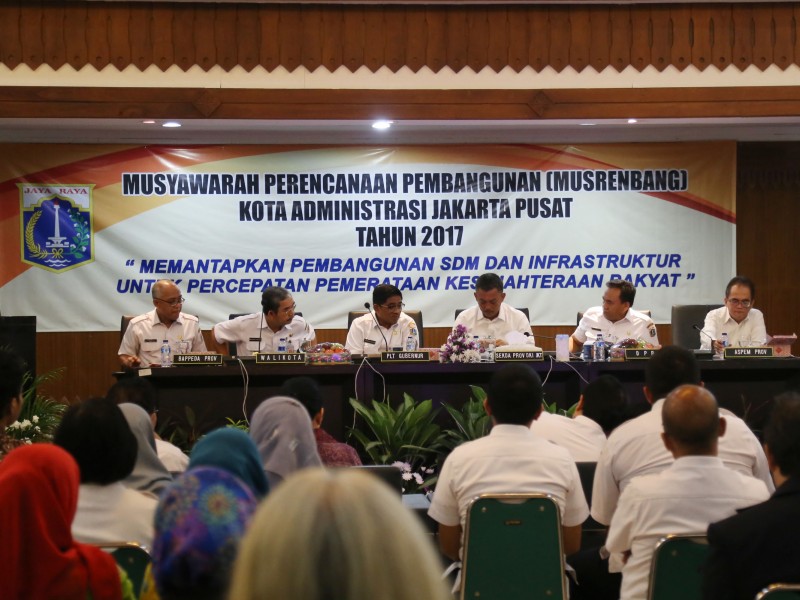 Pelaksana Tugas (Plt) Gubernur DKI Jakarta, Sumarsono membuka acara Musyawarah Perencanaan Pembangunan (Musrenbang) Kota Jakarta Pusat di Ruang Serbaguna Kantor Wali Kota Jakarta Pusat, Rabu (15/3). Plt Gubernur menyampaikan, musrenbang merupakan bagian dari sistem perencanaan nasional. Seluruh aspirasi masyarakat dibahas dan ditampung dalam forum ini. (Foto: Punto/beritajakarta.com)