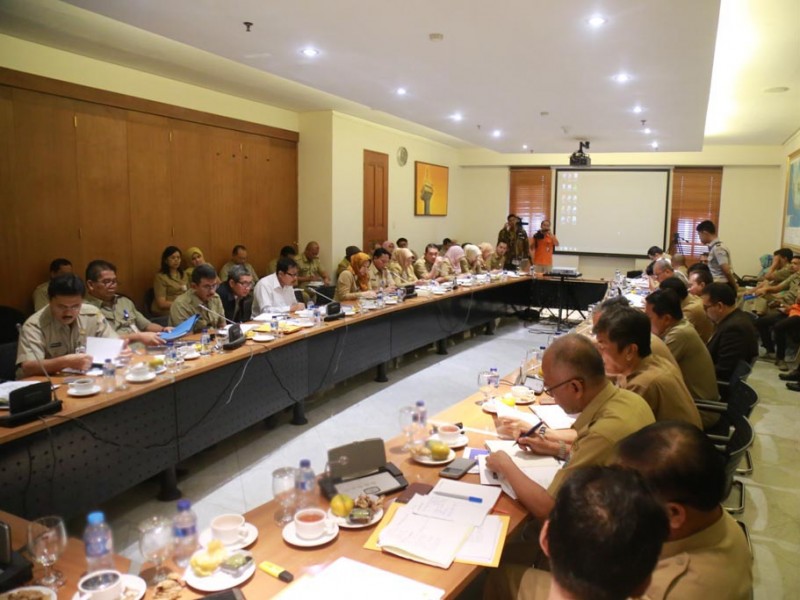 Pelaksana Tugas (Plt) Gubernur DKI Jakarta, Sumarsono memimpin rapat pimpinan bersama jajaran Satuan Kerja Perangkat Daerah (SKPD) di Balai Kota DKI Jakarta, Senin (20/3). Salah satu fokus pembahasan dalam rapim kali ini terkait penyelesaian normalisasi kali Gendong Jakarta Utara. (Foto: Reza/beritajakarta.com)