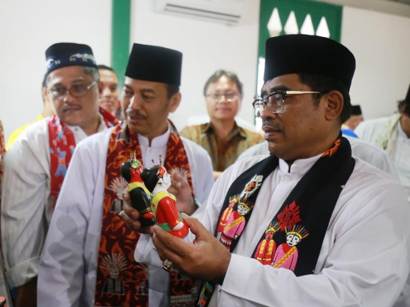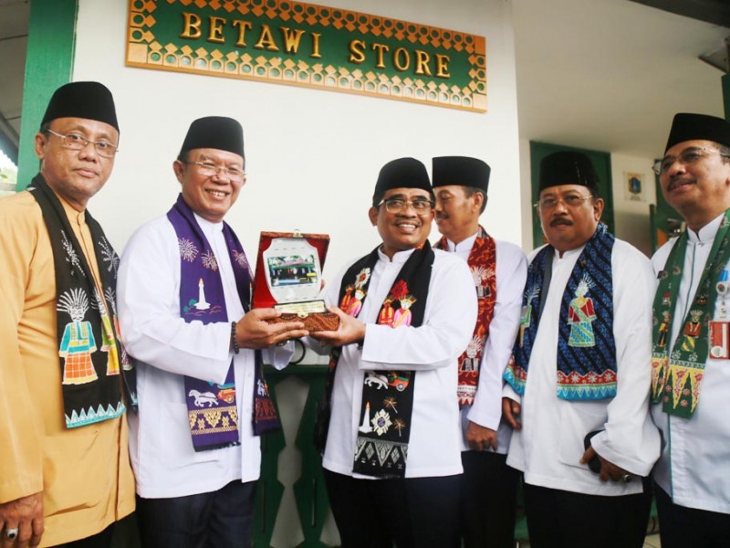 Pelaksana Tugas (Plt) Gubernur DKI Jakarta, Sumarsono meresmikan Outlet Souvenir Betawi (Betawi Store) di kawasan Lenggang Jakarta, Monas, Jakarta Pusat, Kamis (23/3). Sejumlah produk kerajinan dijual di toko ini diantaranya, kain tenun dan beragam hiasan khas Betawi. Selain itu, ragam kuliner khas Betawi juga tersedia. (Foto: Reza/beritajakarta.com)