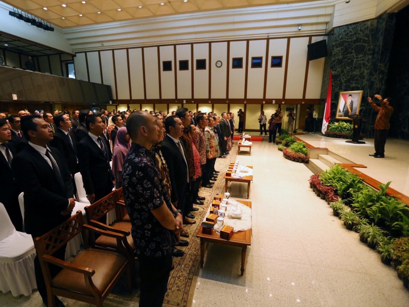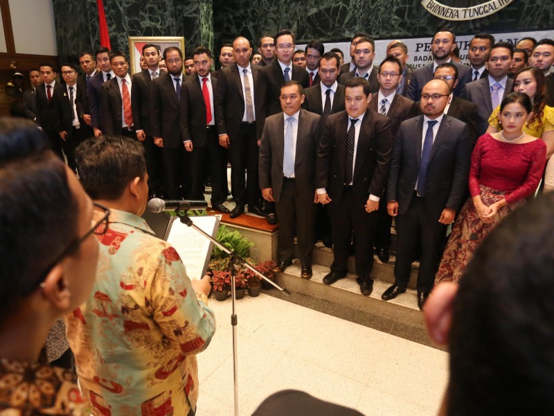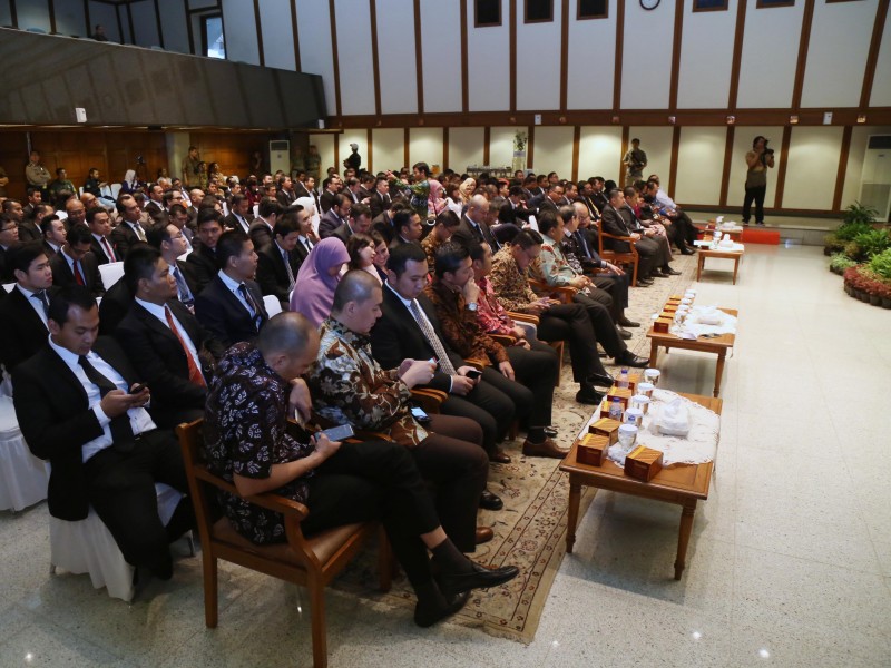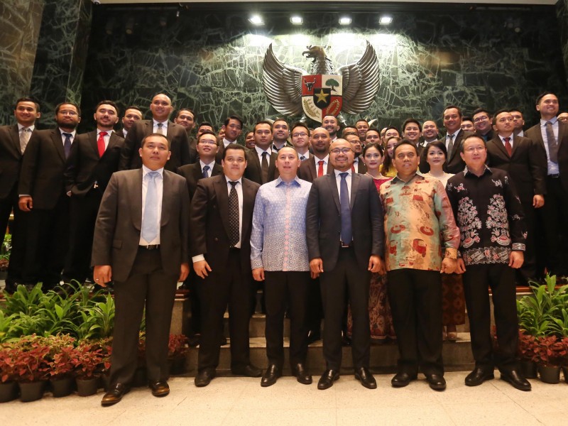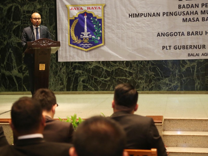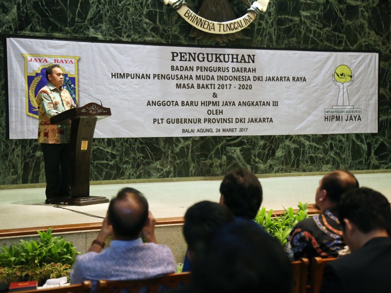 Sekretaris Daerah (Sekda) Saefullah, mengukuhkan Badan Pengurus Daerah Himpunan Pengusaha Muda Indonesia (BPD HIPMI) DKI Jakarta Raya masa bakti 2017-2020 dan anggota Baru HIPMI Jaya Angkatan III di Balai Kota Jakarta, Jumat (24/3). (Foto: punto/beritajakarta.com)
