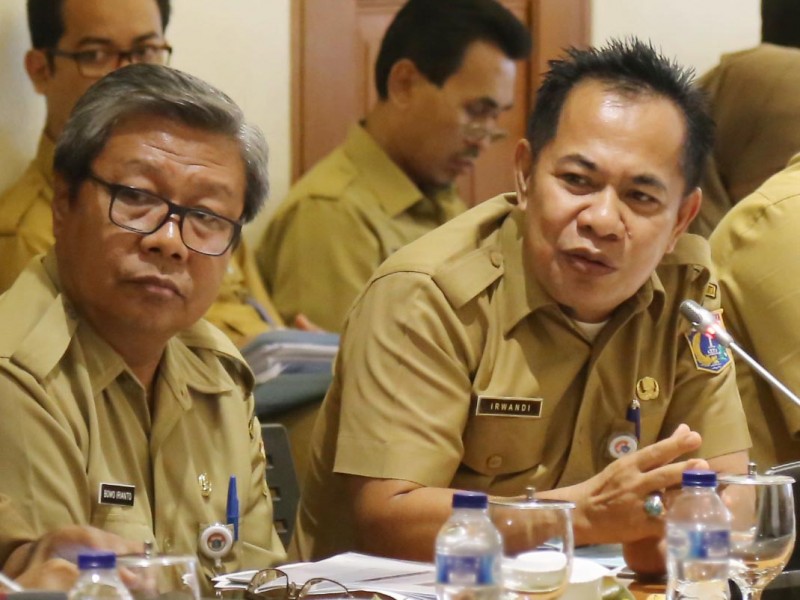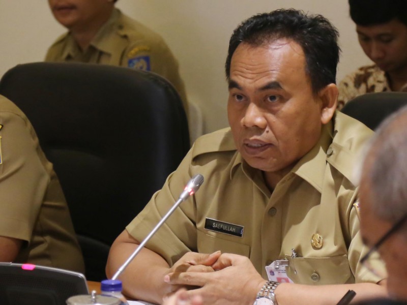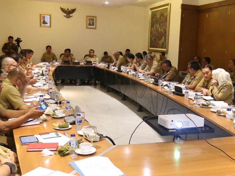 Pelaksana Tugas (Plt) Gubernur DKI Jakarta, Sumarsono memimpin rapat bersama jajaran Satuan Kerja Perangkat Daerah (SKPD) di Balai Kota DKI Jakarta, Senin (27/3). Salah satu fokus pembahasan dalam rapim kali ini terkait penggunaan ikon Betawi terhadap seluruh aset Pemprov DKI Jakarta. (Foto: Punto/beritajakarta.com)